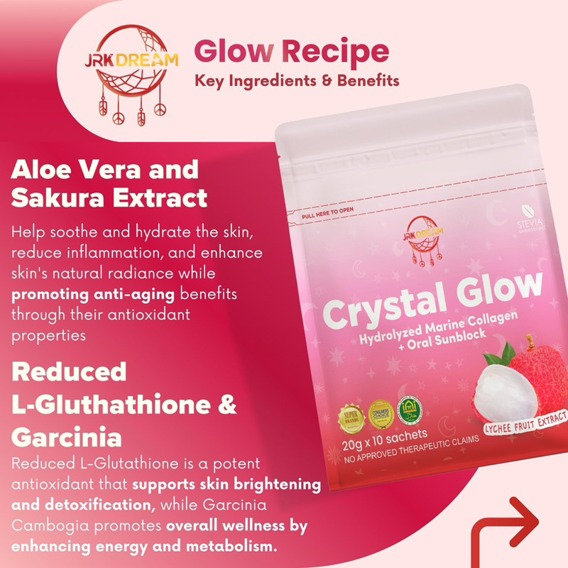 JRK DREAM Crystal Glow Collagen And Slimming Drinks 10 Sachets 210g CRYSTAL GLOW LYCHEE