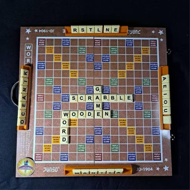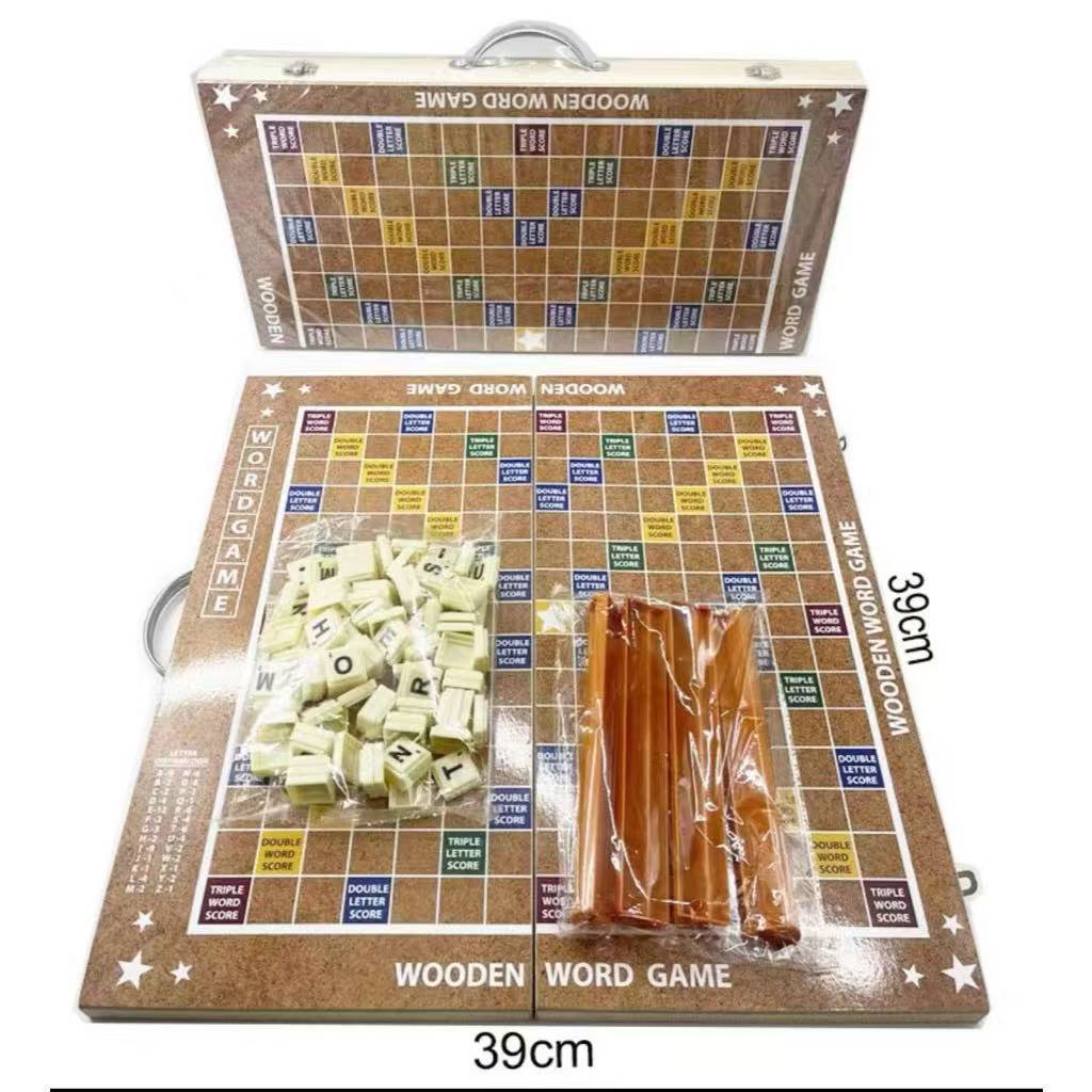 JS #39CM Wooden Word Game with Plastic Letter Tiles Educational Classic SCRABBLE Board Game