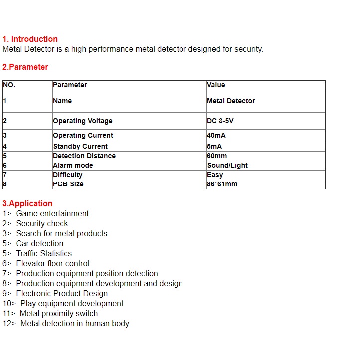 JS-60 DIY Kit Metal Detector Kit Electronic Kit DC 3V-5V 60mm Non-contact Sensor Board Module DIY Electronic Part Metal Detector