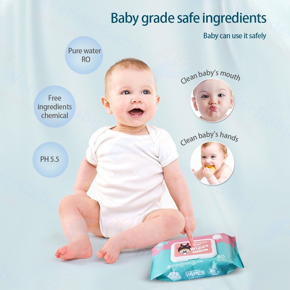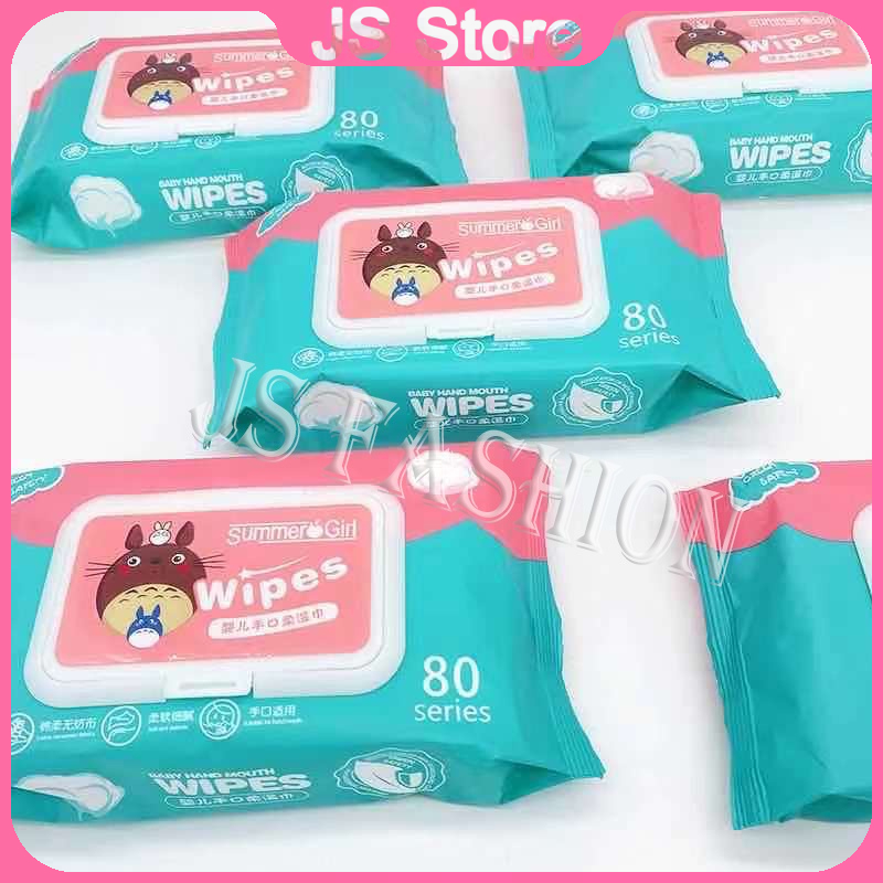 JS~Baby Wipes 80Pcs Per Pack 99% Water Hypoallergenic (Non-Alcohol-wet wipes)