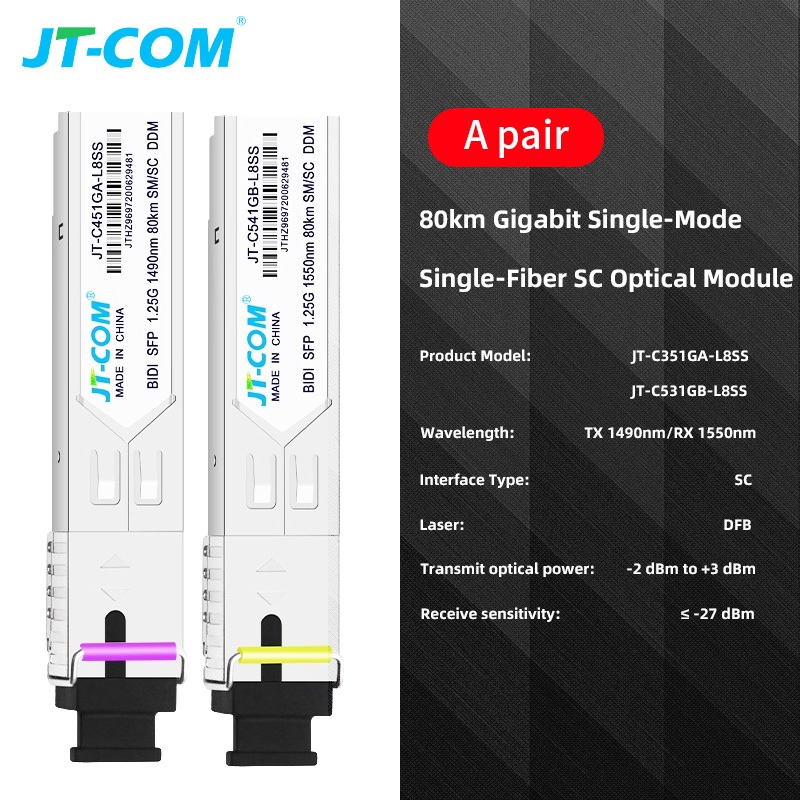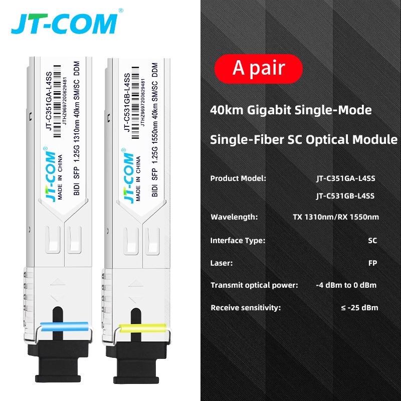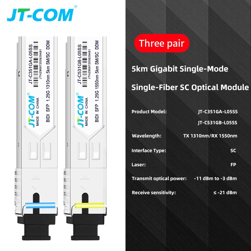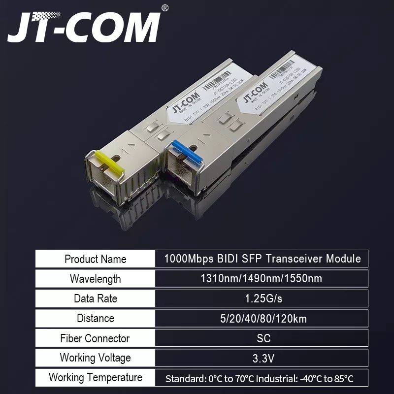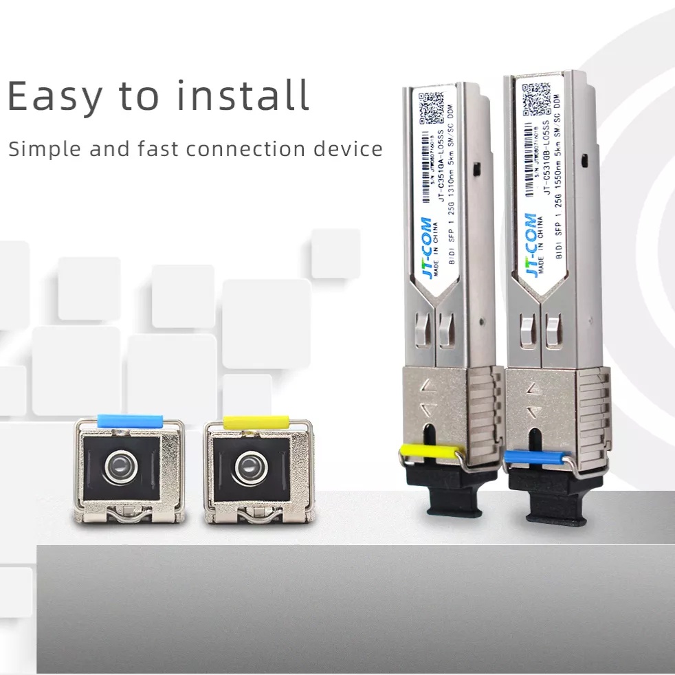 JT-COM 1.25G SFP Module BIDI SC with DDM, Single Mode simplex 1g SC Fiber 1310nm/1550nm 5km / 20km / 40km/ 60KM / 80km /120KM SFP Module Compatible cisco/Mikrotik Switch