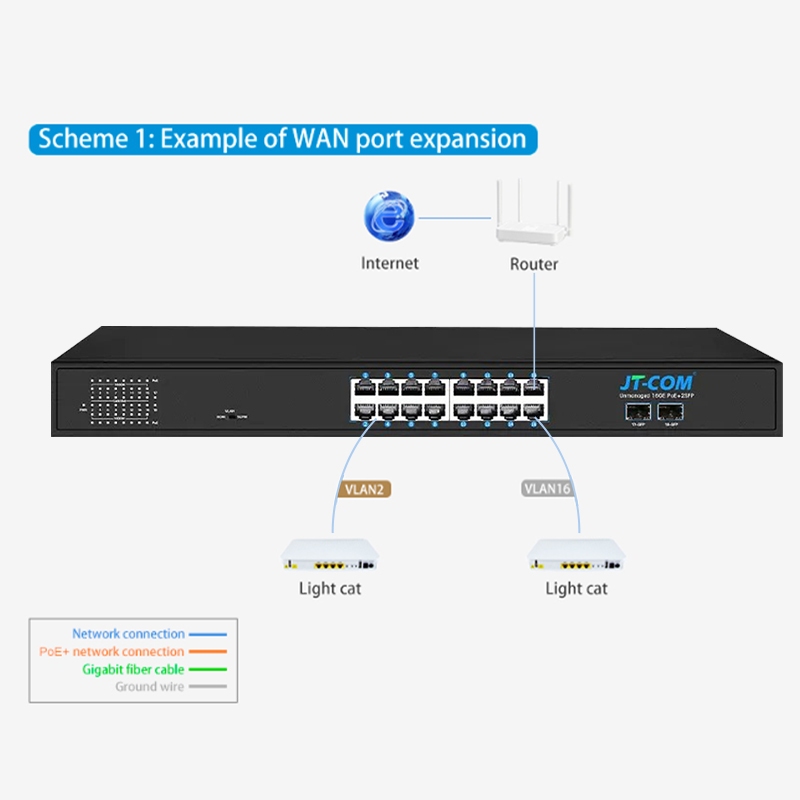 JT-COM 16-Port Network Switch Gigabit Ethernet 1000Mbps High Performance Smart Switcher RJ45 Hub Internet Injector and Managed Switch Support Vlan,LACP Compatible with Cisco, TP Link, and Mikrotik Switch