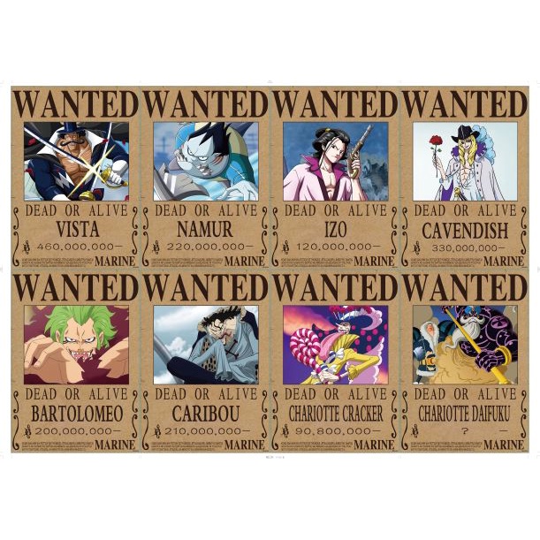 JTS ONE PIECE WANTED CHARACTERS NEW FOR LIVING ROOM, BEDROOM ETC. SIZE: 23.5CM X 33.5CM