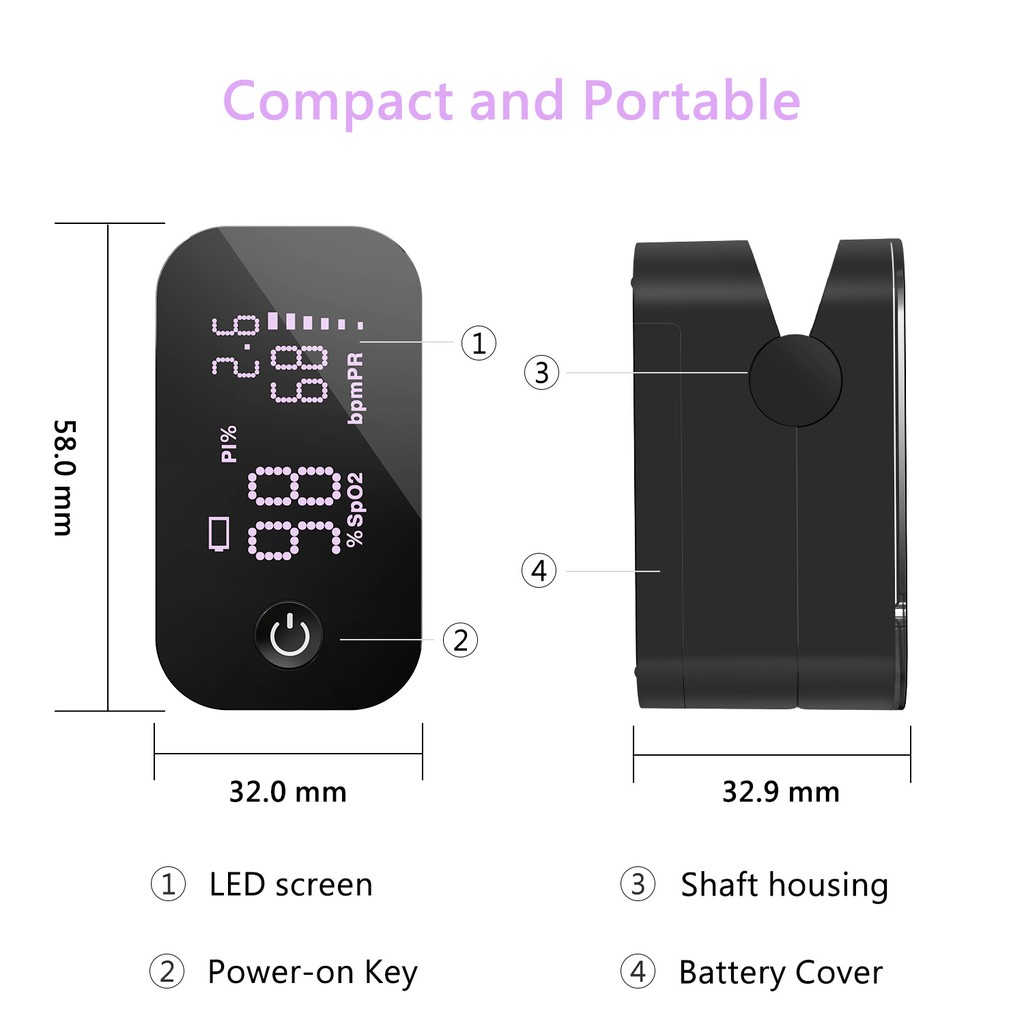 JUMPER Oximeter Monitor Fingertip Pulse Oximeter 500G LED Spo2 Monitor PR PI Blood Oxygen Pulse Rate Monitor Black