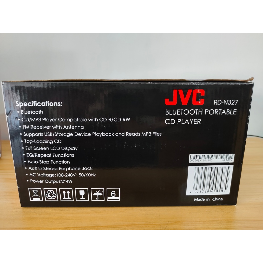 JVC RD-N327 Portable Bluetooth Radio CD/MP3 Player Boombox (110-240V)
