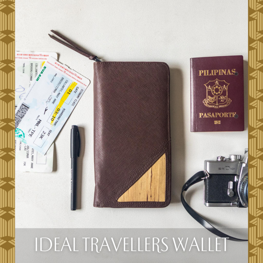 Bucket List Travel Wallet | Zippered Passport & Checkbook Wallet with Wristlet (Brown)