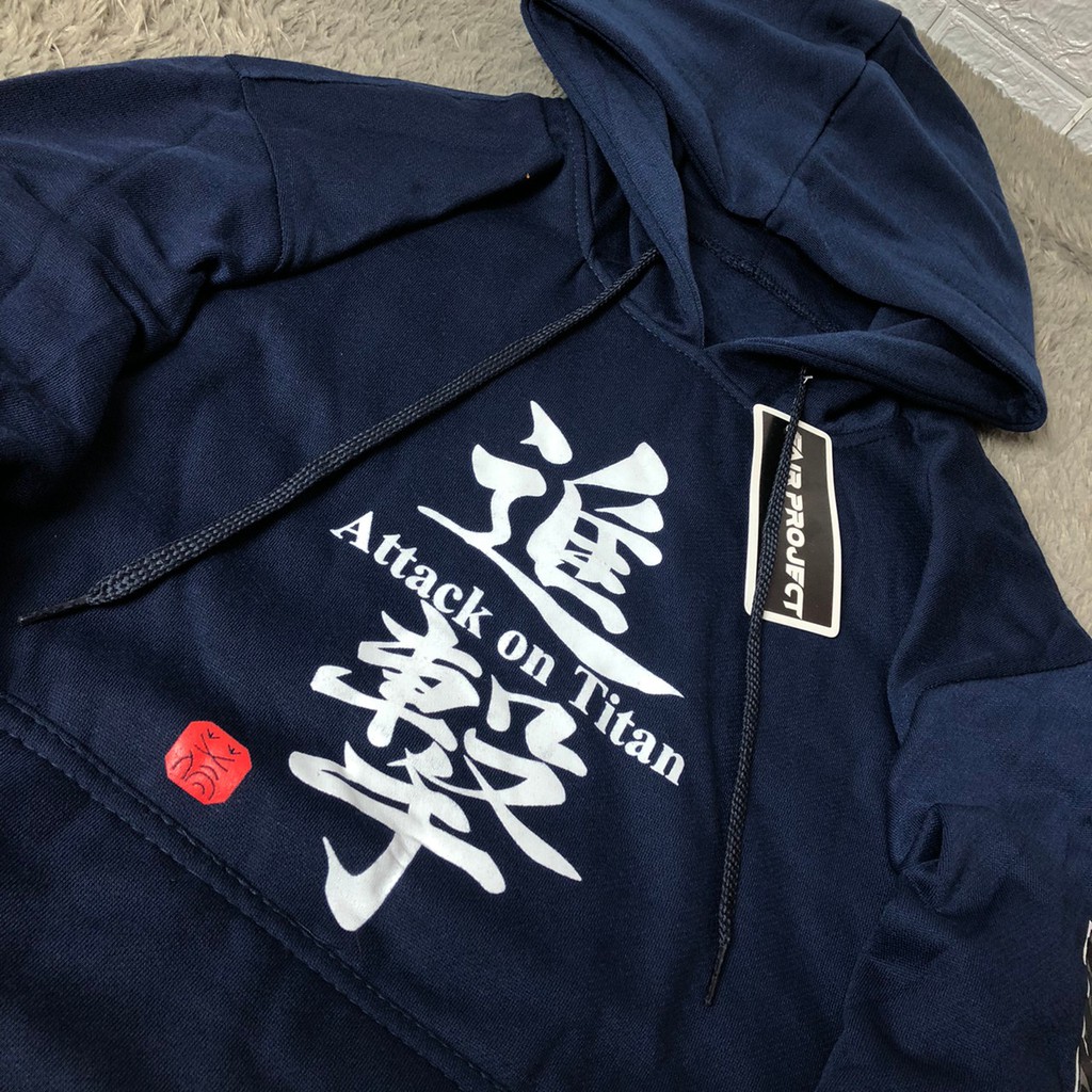 Jacket hoodie jumper anime AOT - ATTACK ON TITAN LOGO V2 - SHINGEKI NO KYOJIN 100% cotton fleece
