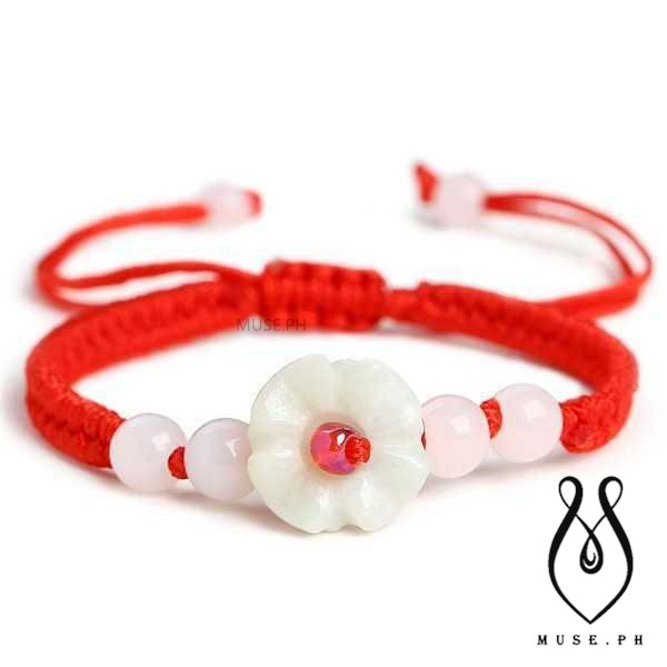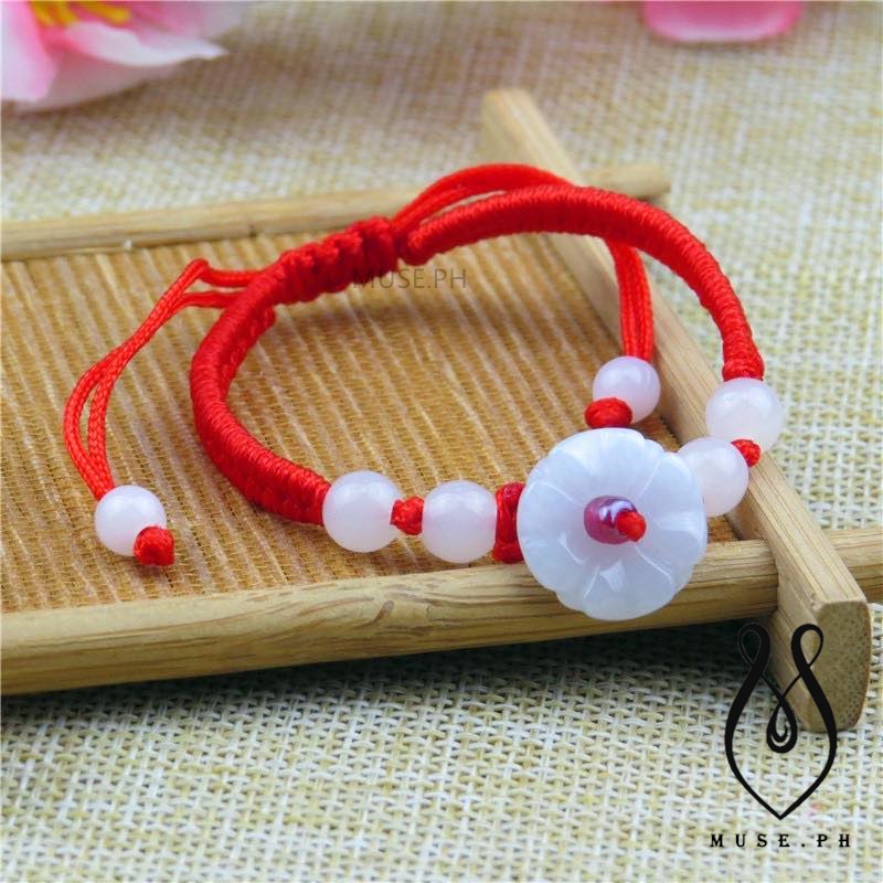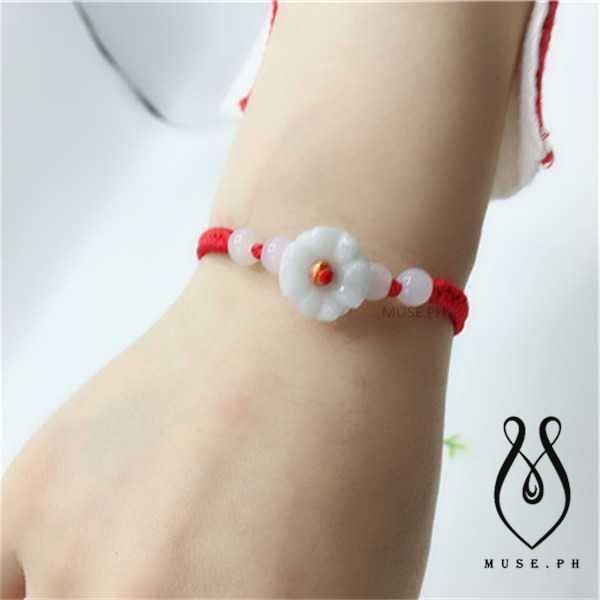 Jade Beads Flower Red String Rope Bracelet Good Luck Lucky Wealth Success Moral Amulet