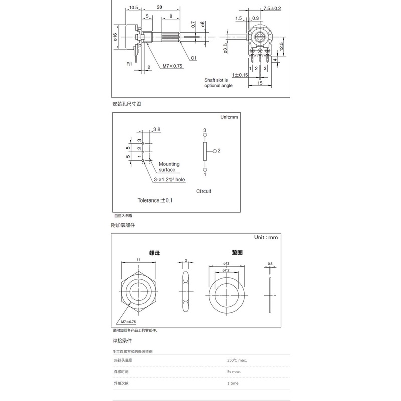 Japan Original ALPS RK16 Type 16 Double 3 Pin 10KB 50KB 100KB HiFi Audio Volume Control Potentiometer
