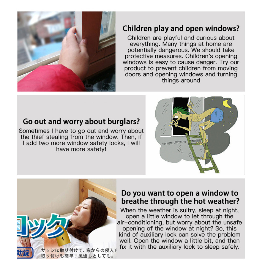 Japan Quality Safety Security Anti-theft Sliding Auxiliary Window Limiter Lock Sash Stopper Kids Pet
