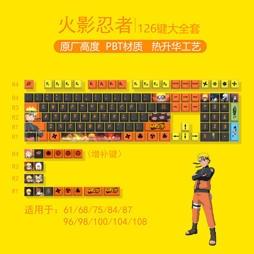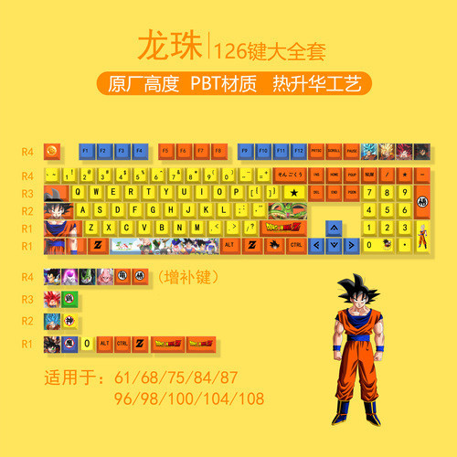Japanese Anime Keycaps Cherry Profile PBT 126 Keys Keycap One Piece Luffy Gundam Dragon Ball Naruto Anime Key Caps For Mechanical Keyboard Boys Girls Keyboard Cross-axis Caps