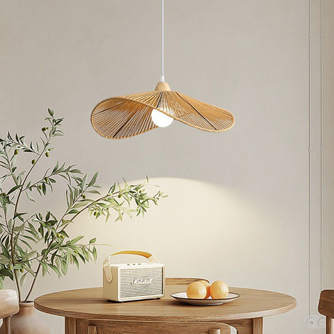 Japanese Bamboo Woven Pendant Light Dining Table Hanging Lights Restaurant Living Room Bedroom Decorative Chandelier Ceiling Light