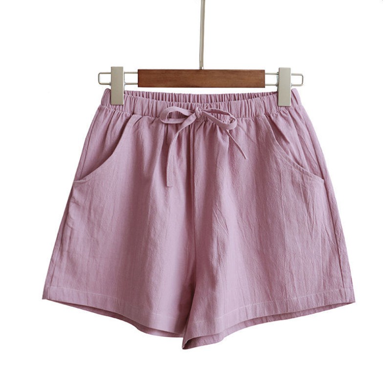 Japanese Basic Shorts Cotton Linen Shorts Dolphin Shorts with Pockets