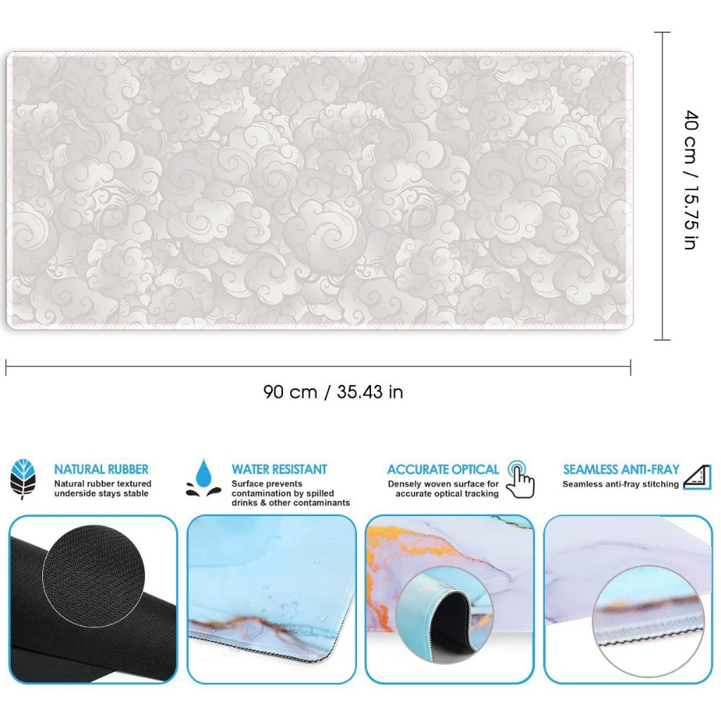 Japanese Clouds Mouse Pad Long Non Slip Waterproof Black And White Mouse Pad Office Game Table Pad Expansion