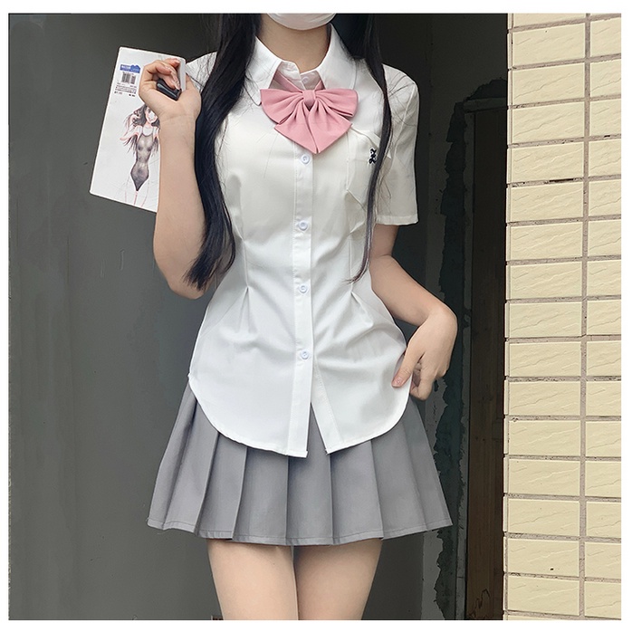 Japanese College Style JK Uniform Tight Waist Slimming Student Uniform Design Sense Short Sleeve Shirt for Women