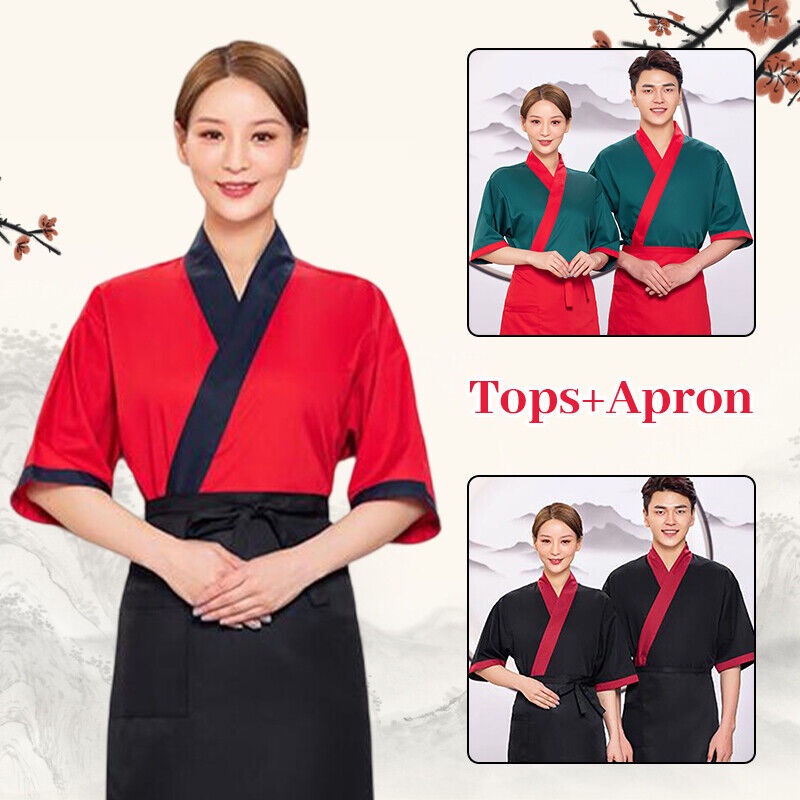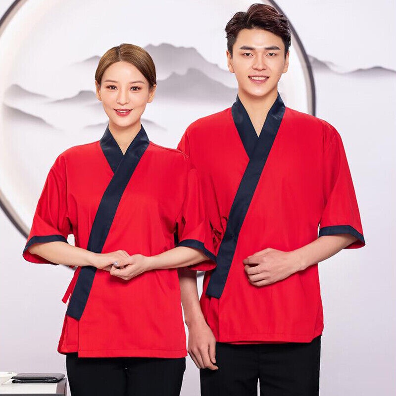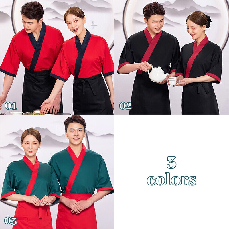 Japanese Cook Uniform Unisex Medium Sleeve Kimono Chef Sushi Restaurant Overalls