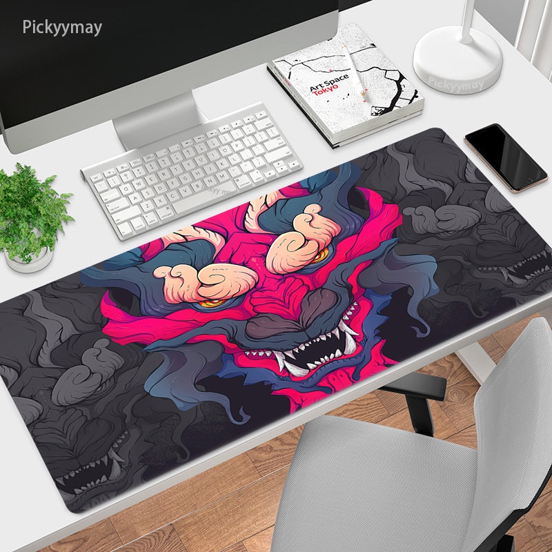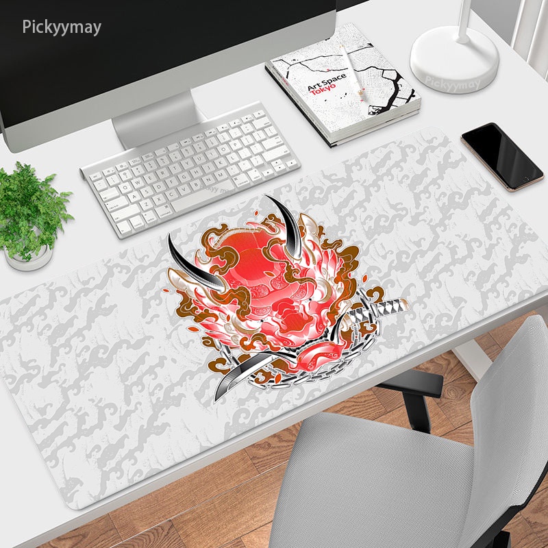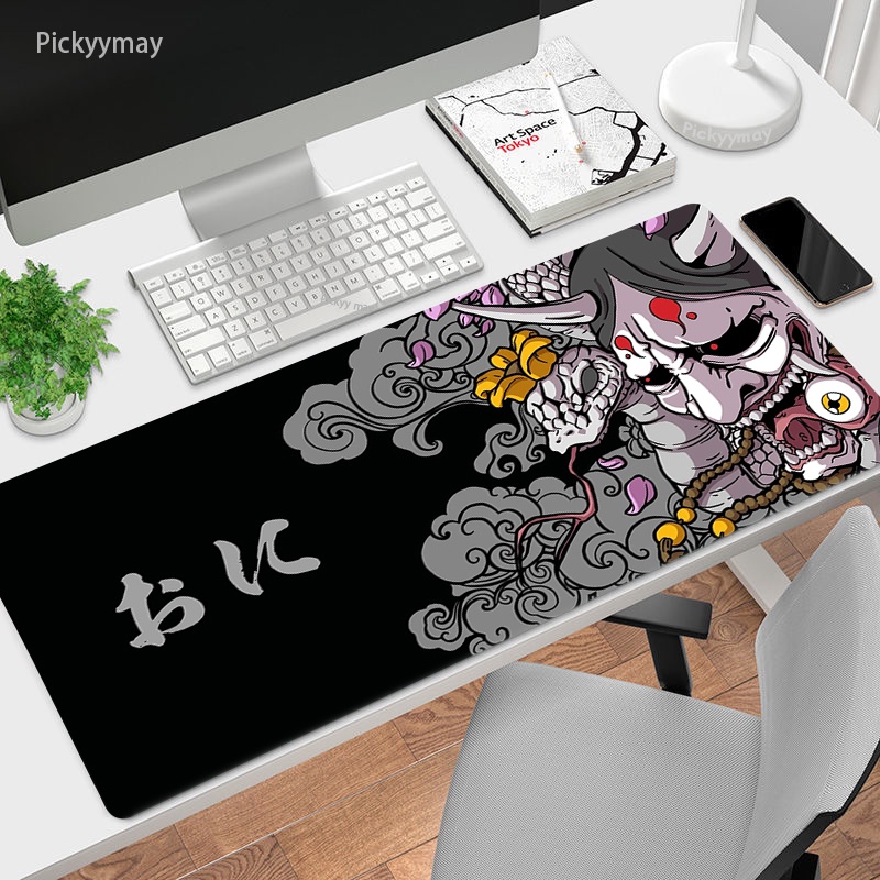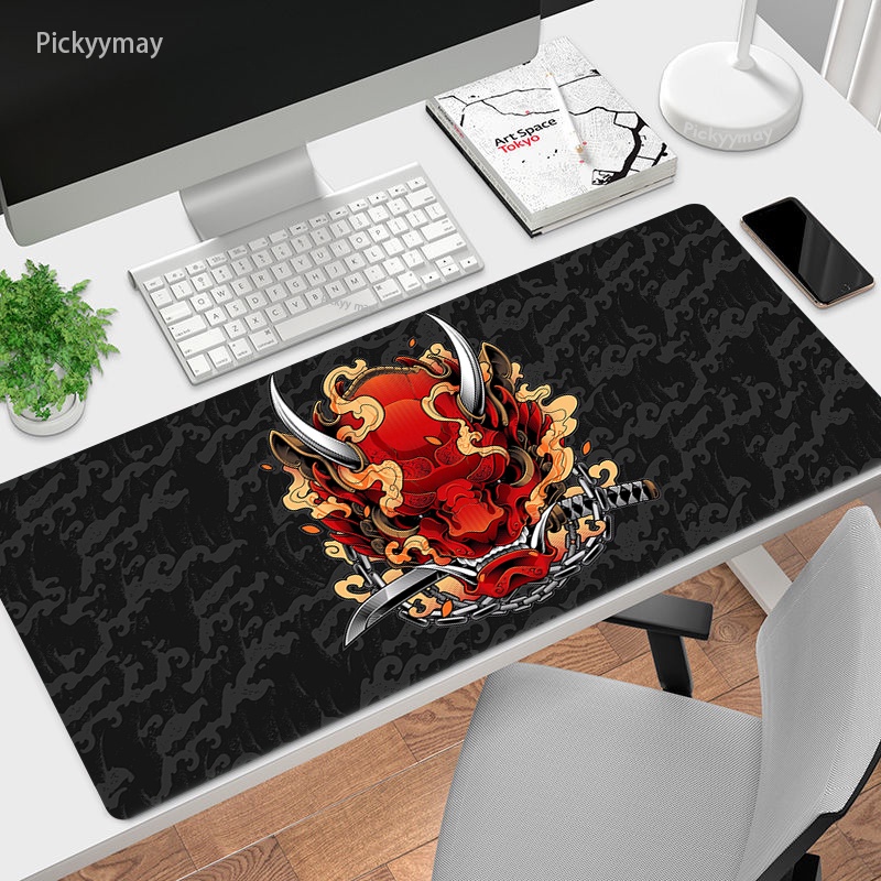 Japanese Gaming Mouse Pad Oni Art Mousepad Gamer Rug Anime Pc Accessories Gaming Computer Table Mat Carpet Laptop Deskmat 100x50