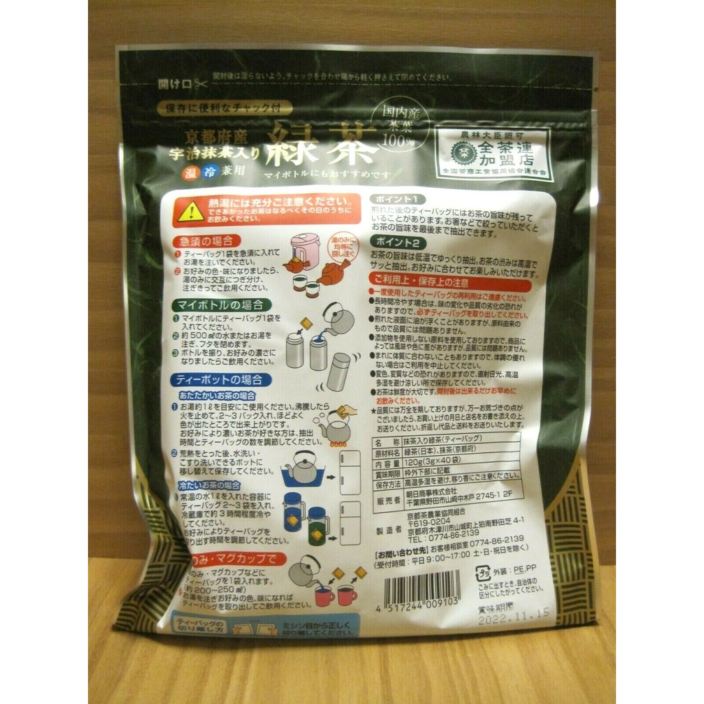 Japanese Green Tea Bagged 120g (3g x 40 bags), Uji Matcha blended Sencha, Hot & Cool, Made in Japan
