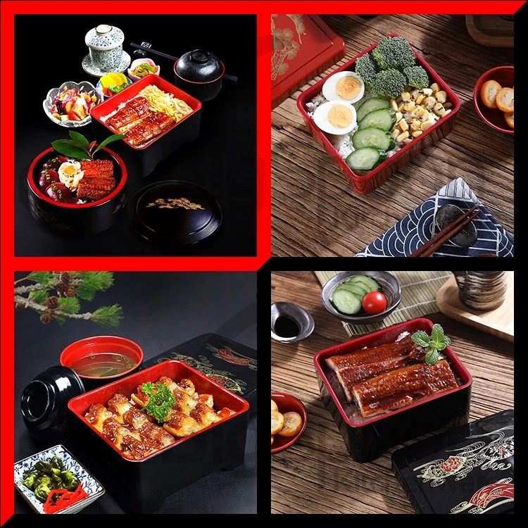 Japanese Lacquer Unagi Bento Box Sushi Bento Container Lunch Box Black/Red Kotak Bekas Makanan