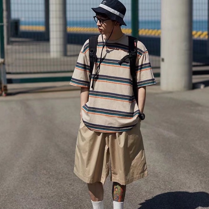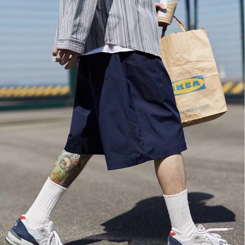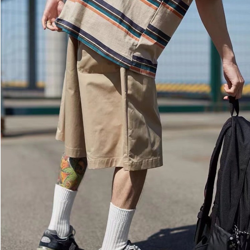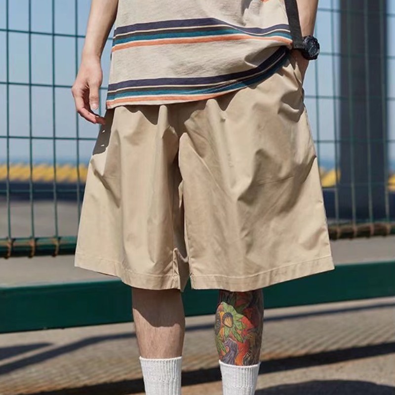Japanese New Retro Style Loose Casual Shorts Men's Summer Solid Color Straight Overalls Sports Pants