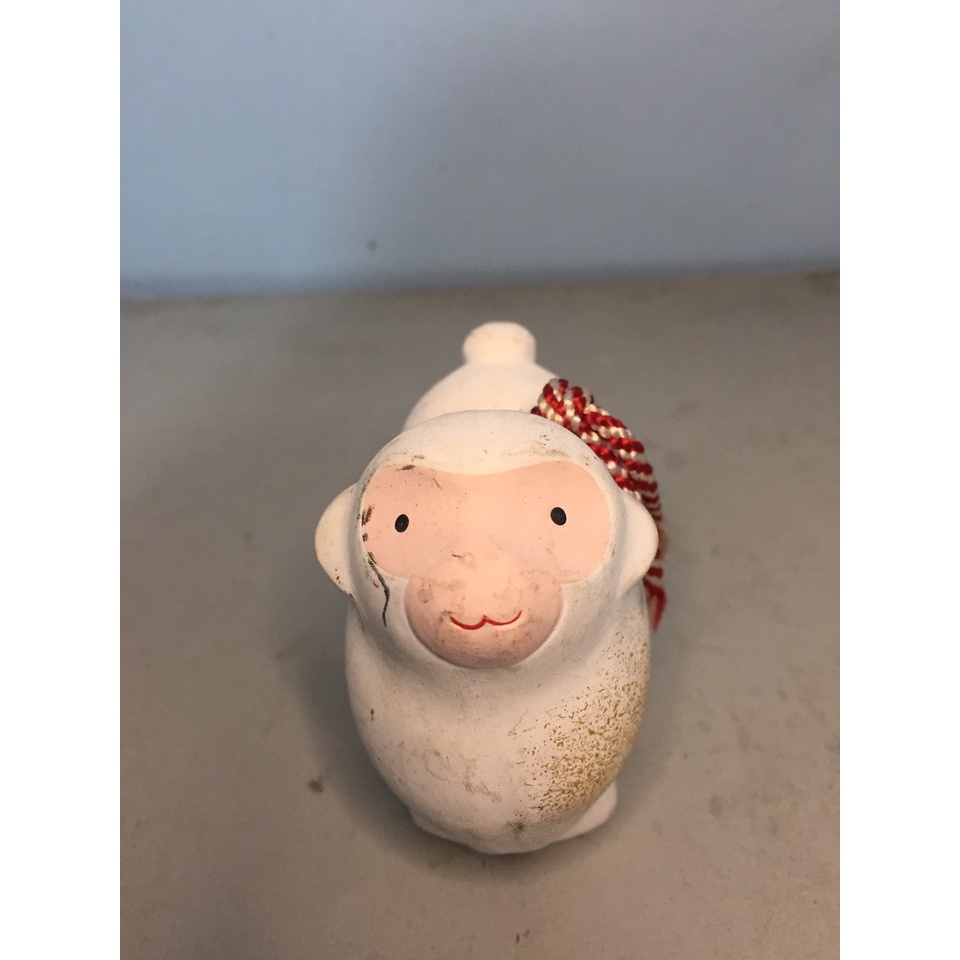 Japanese Sheep with a Red and White Tie Ceramic Animal Miniature or Figure Display