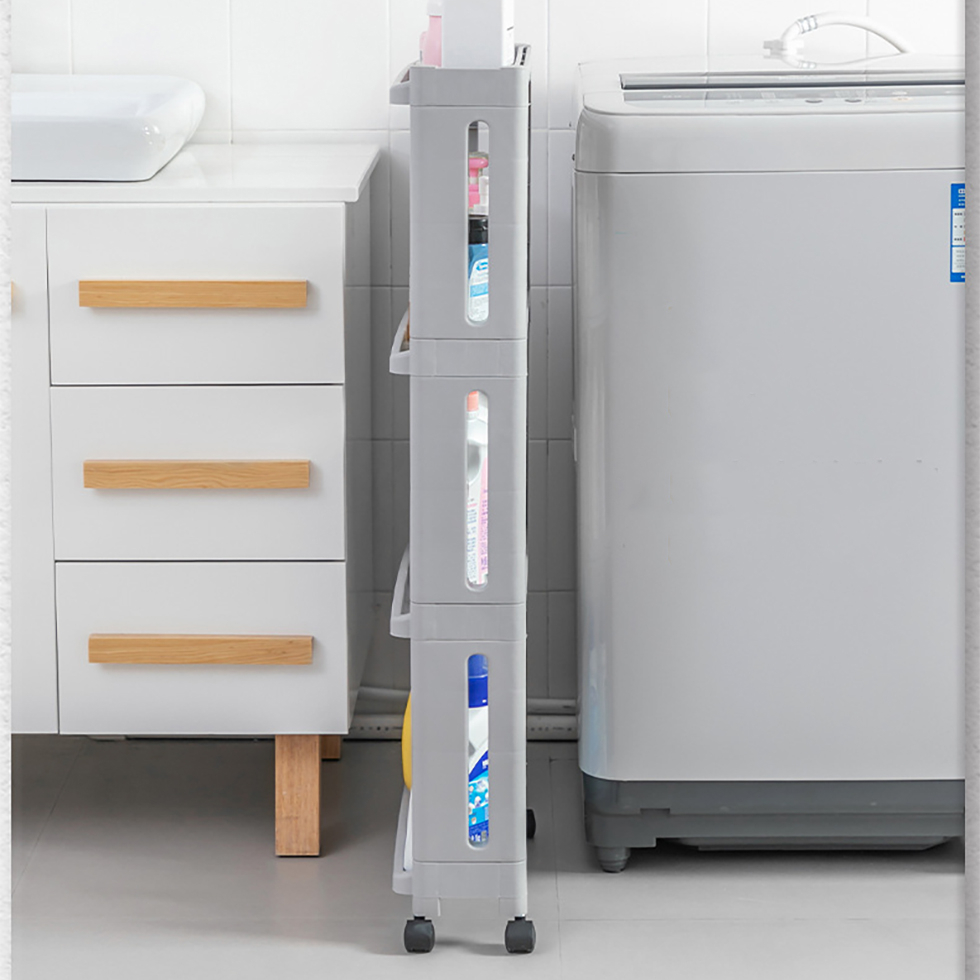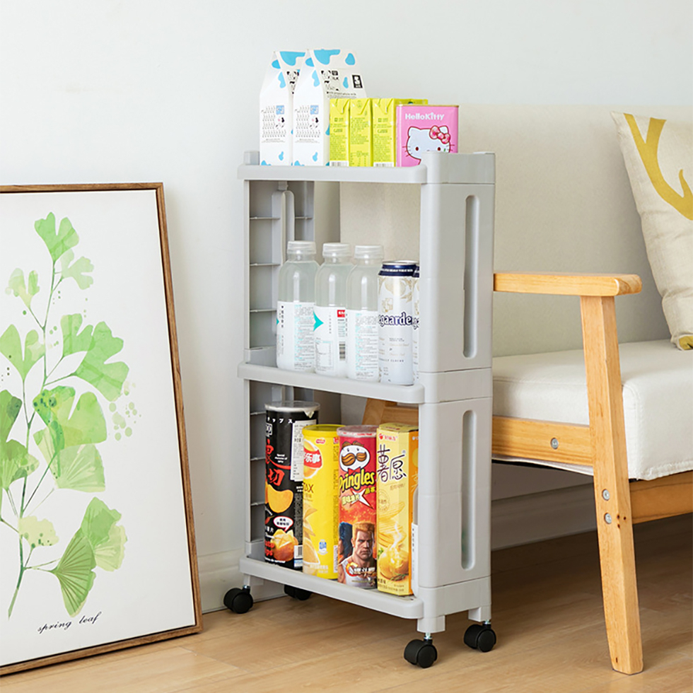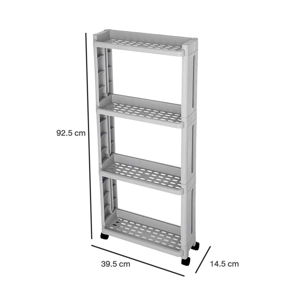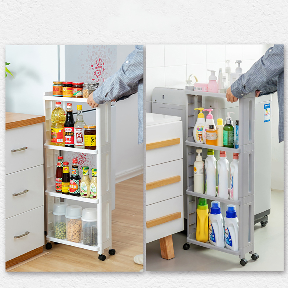 Japanese Style 4-Tier Narrow Space Saver Rack With Wheels (White Grey)