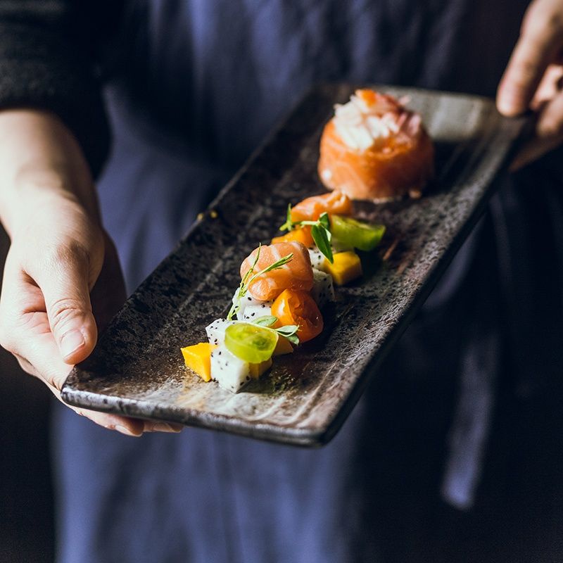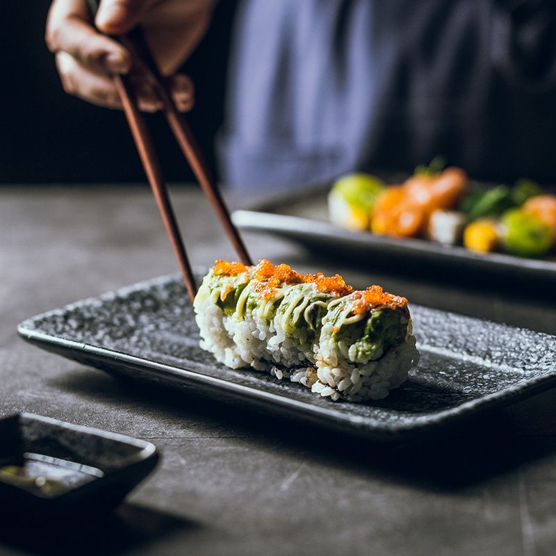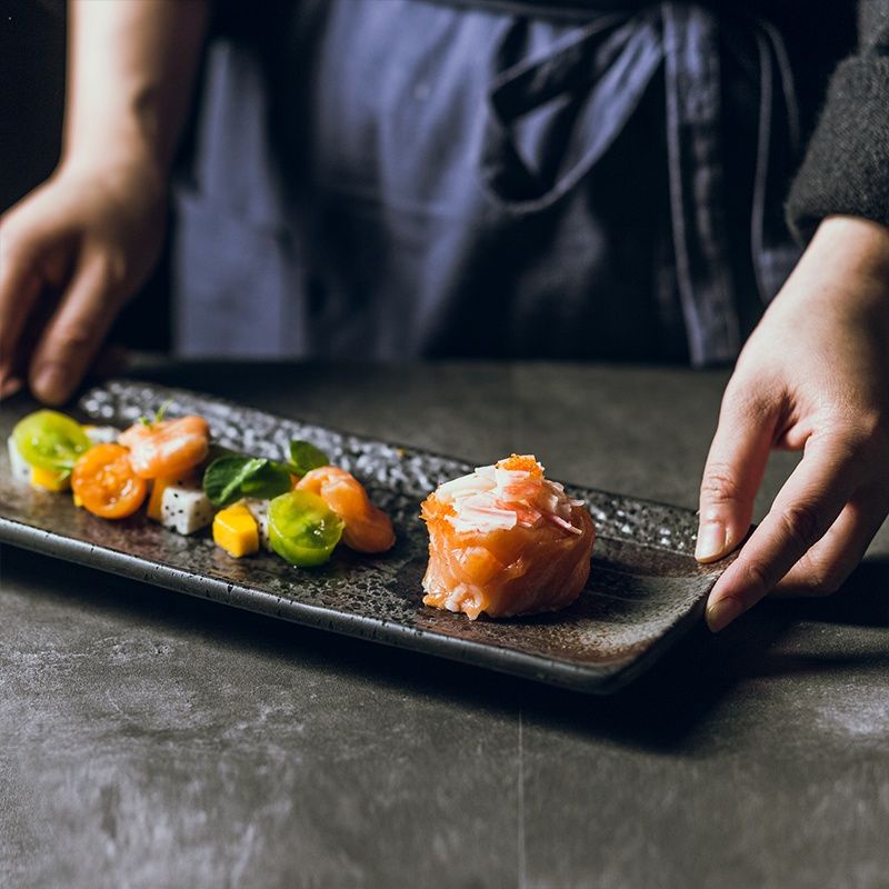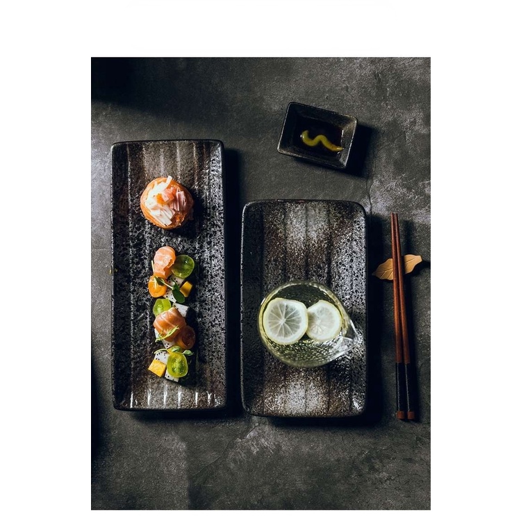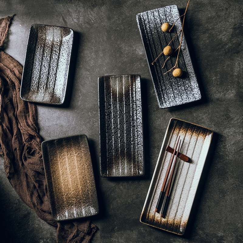 Japanese-Style Ceramic Flat Plate Anti-Scalding Long Ancient Sushi Western Food Marble Tray Snack Fruit Cake Dinner Environmentally Friendly Tableware