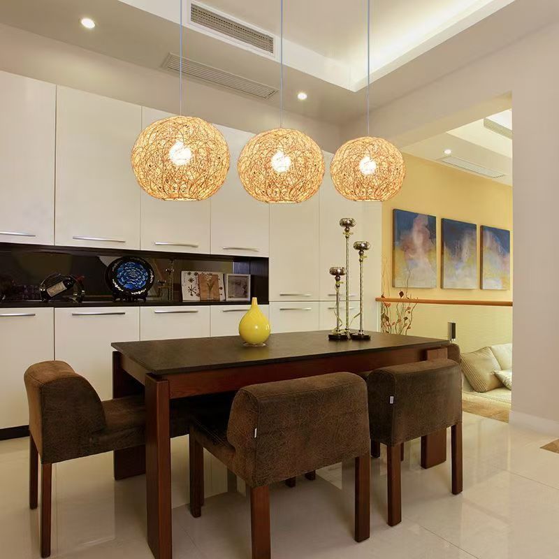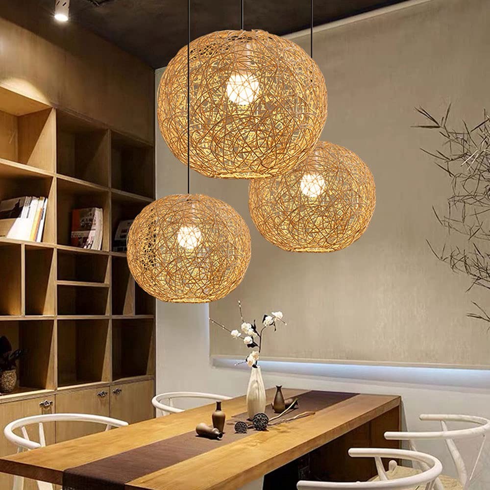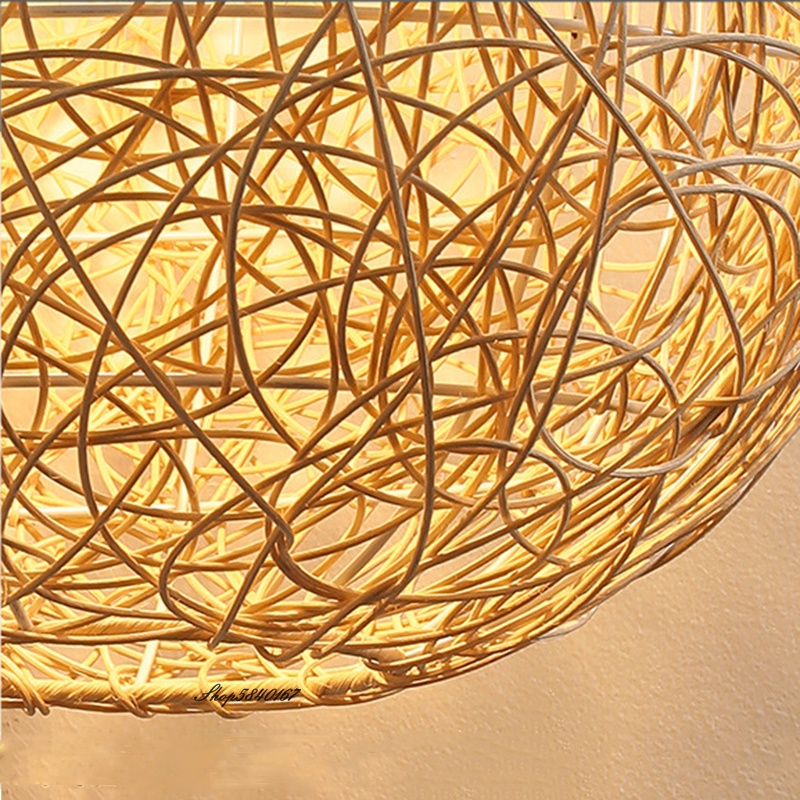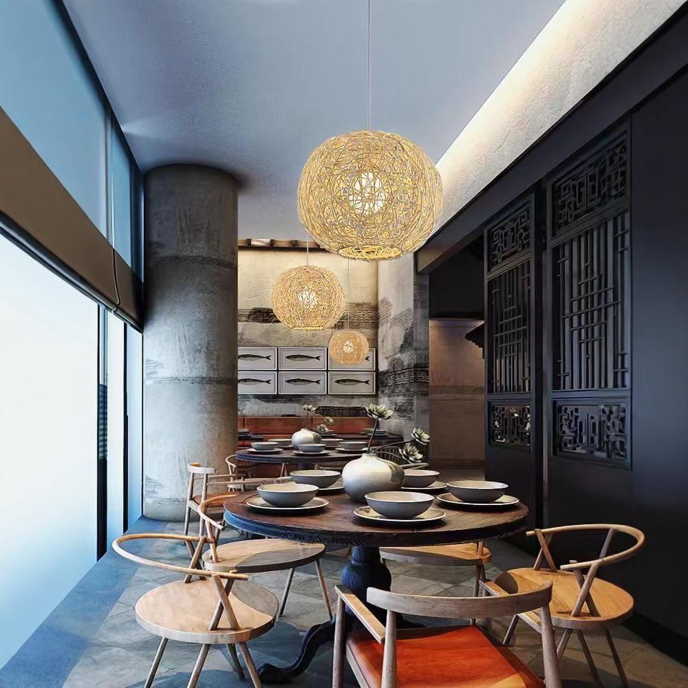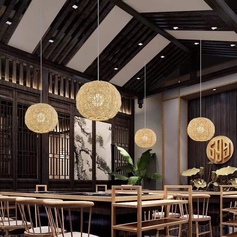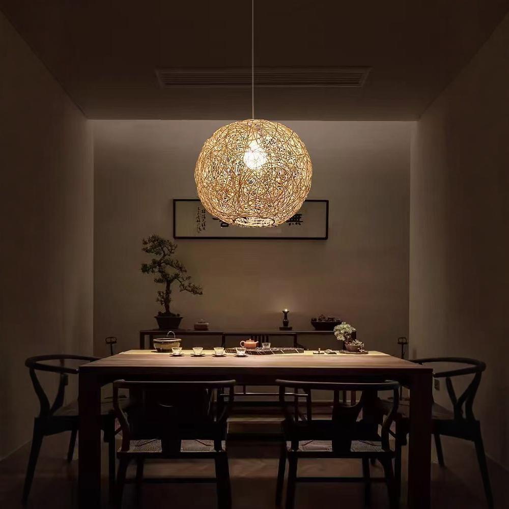 Japanese Zen Rattan Chandelier, Retro Pastoral Hand-woven Pendant Ceiling Light, Country, Restaurant, Kitchen Island Decorative Hanging Lamp