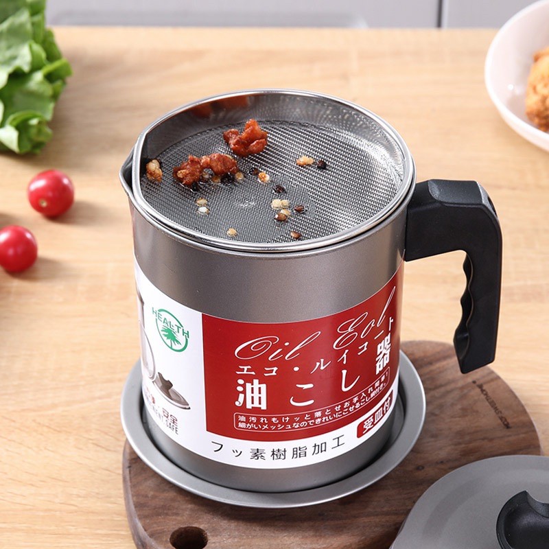 Japanese style oil pot Household stainless steel filter mesh oil pot with lid Oil filter pot