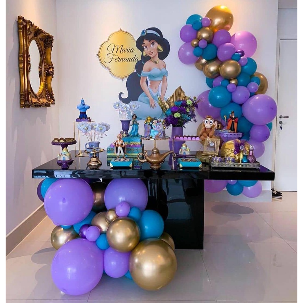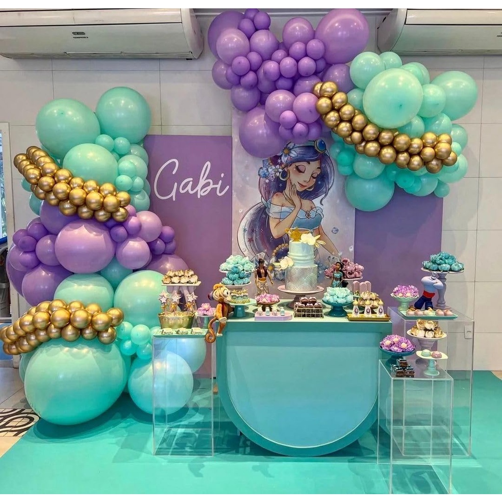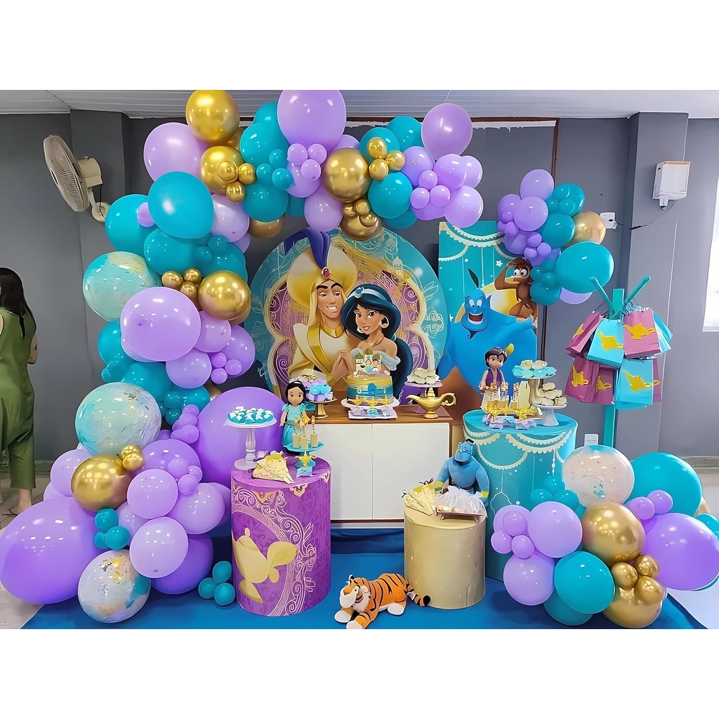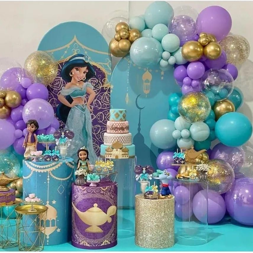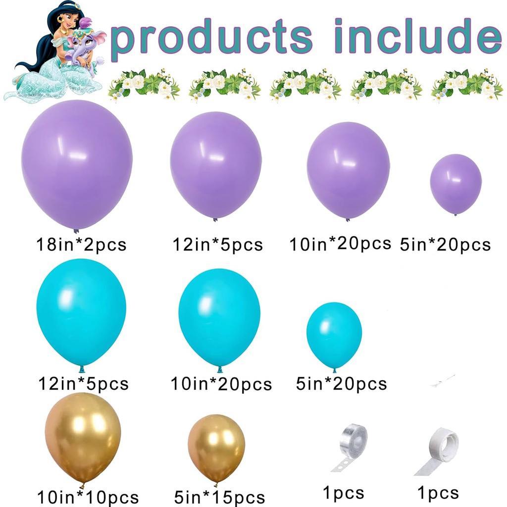 Jasmine Princess Balloons Garland Arch Kit, Purple Blue and Gold Latex Balloons, for Princess Themed Girl Birthday Party Decoration Supplies, Used for Background Decoration