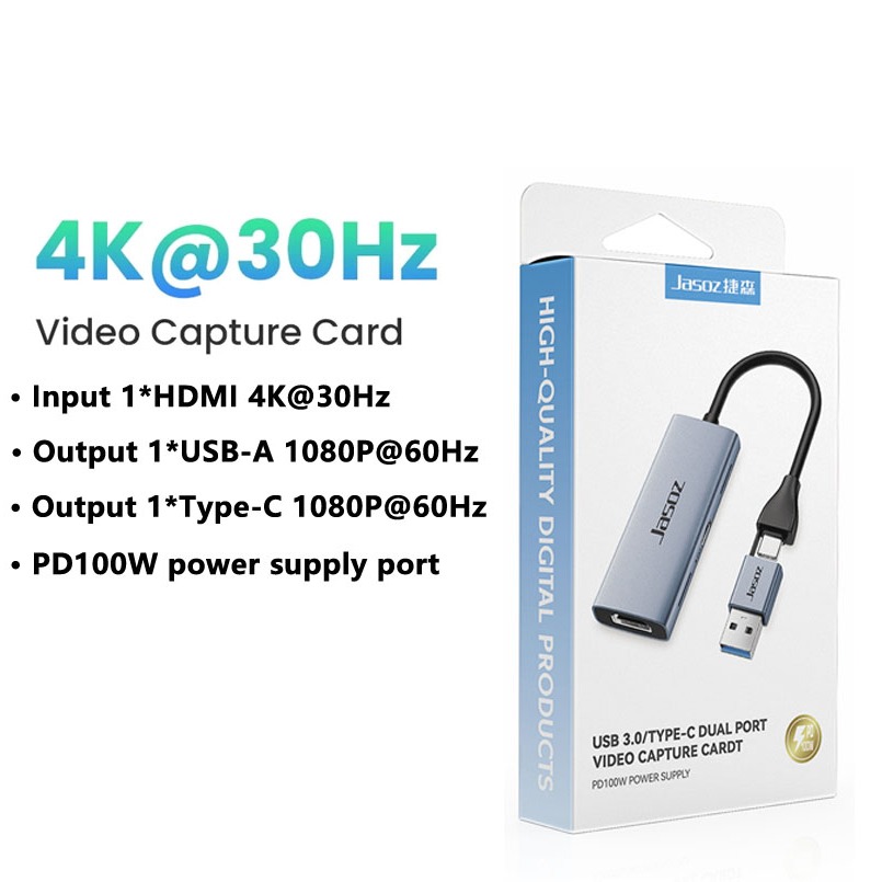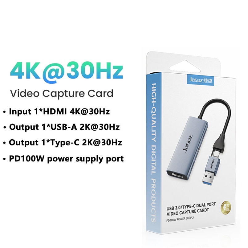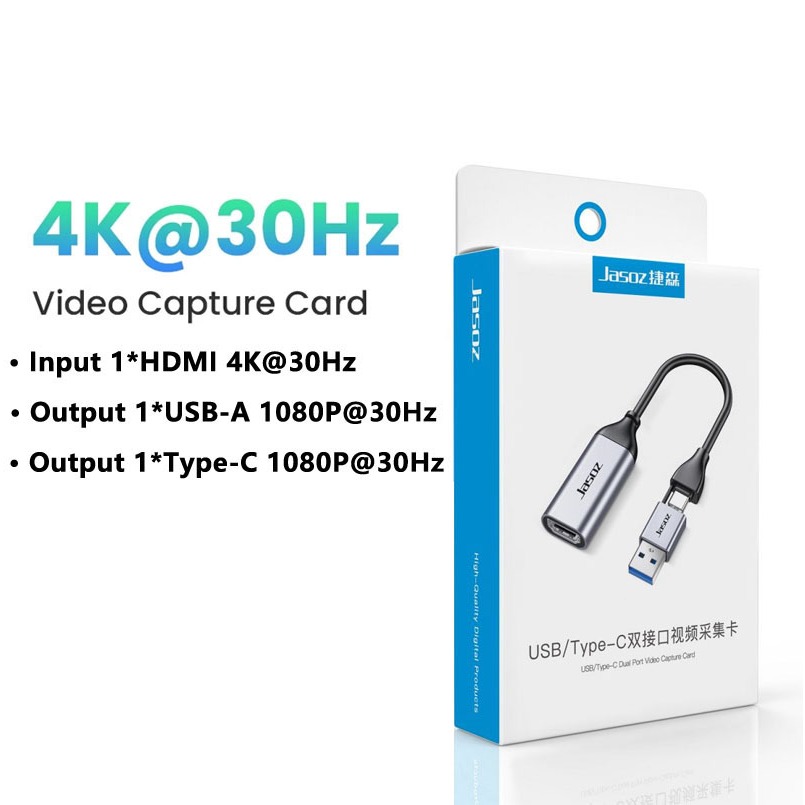 Jasoz 2 in 1 Video Capture Card 4K HDMI to USB/Type-C HDMI Video Grabber Box for PS5 DVD Live Stream