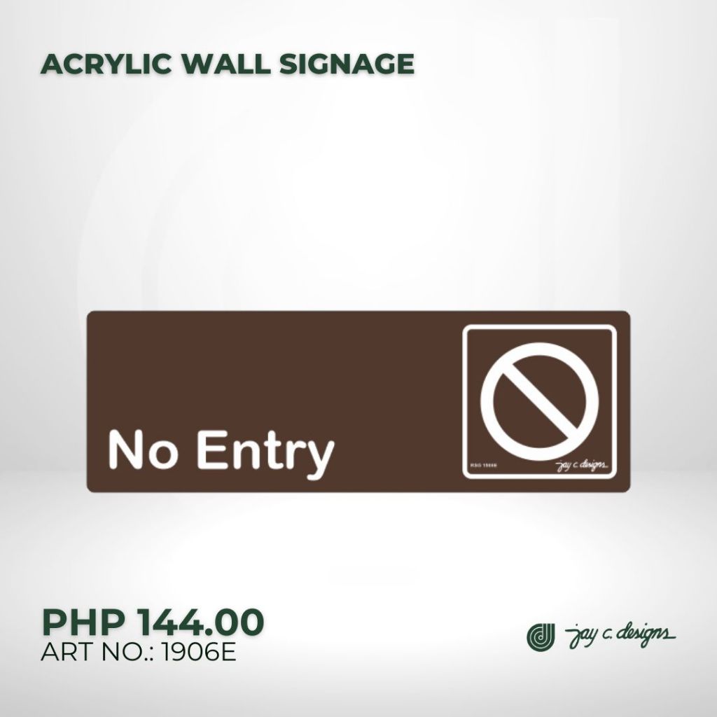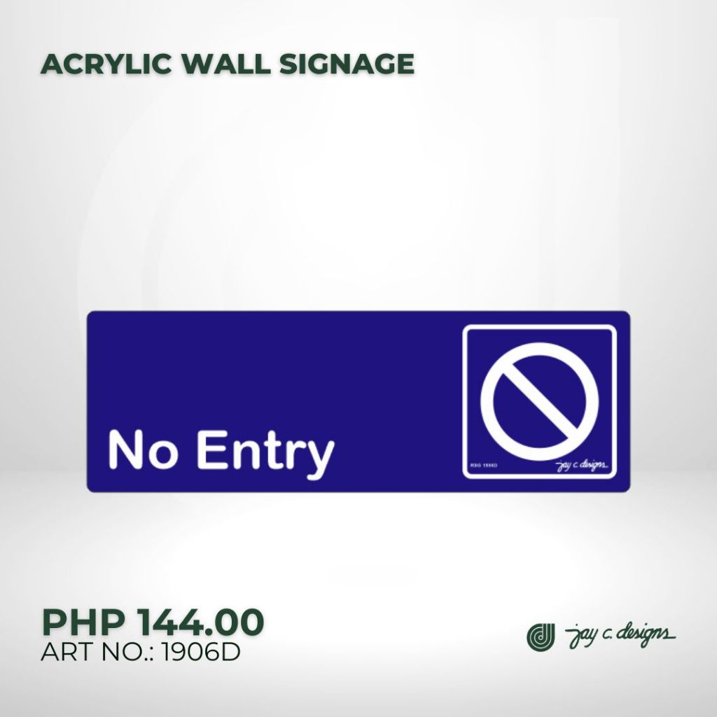 Signage - Acrylic Signage No Entry Acrylic Sign - Jay C. Designs - 1906