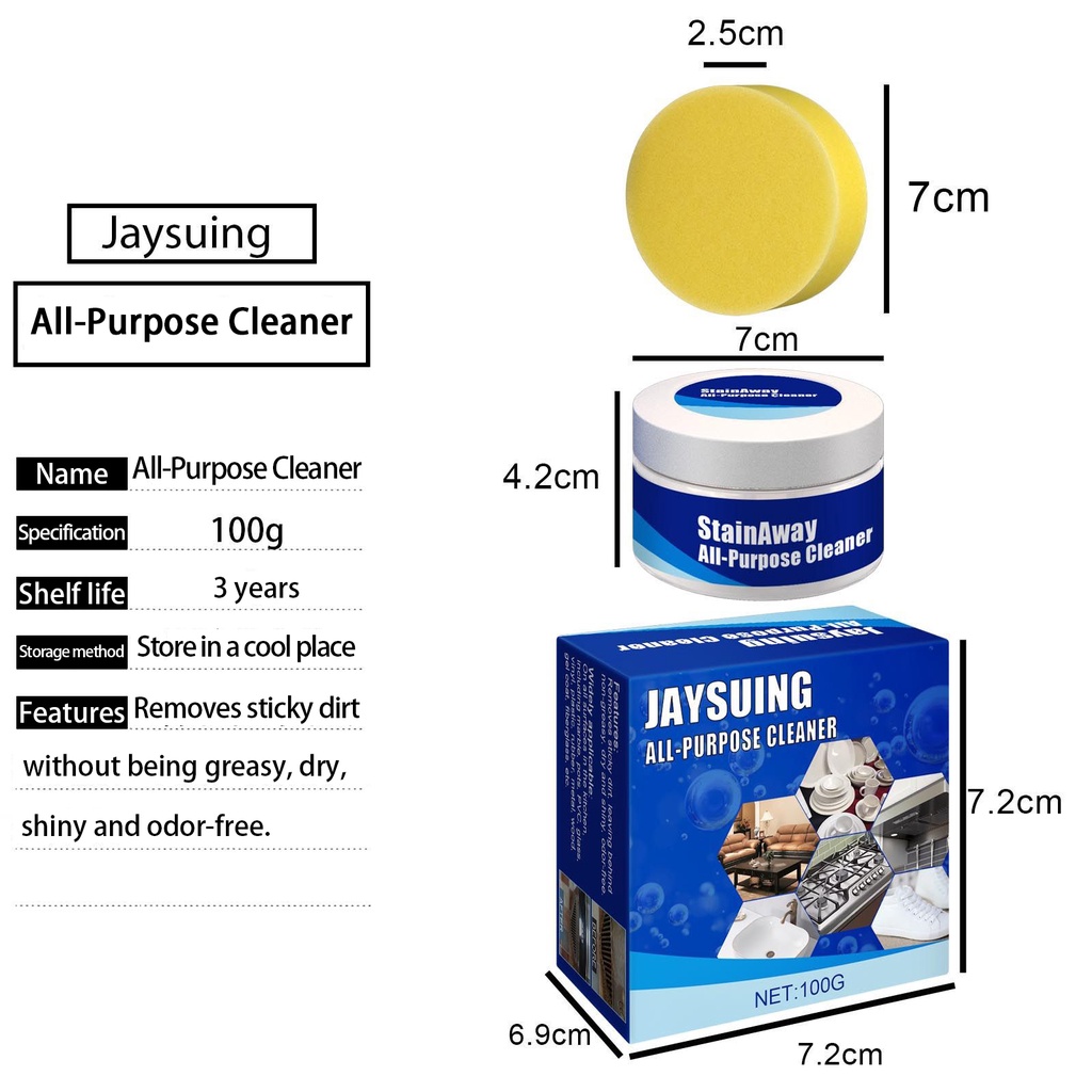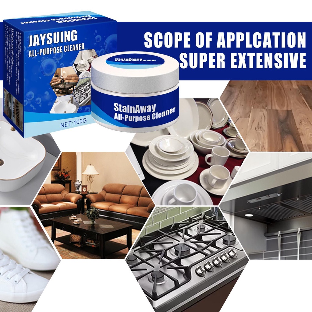 Jaysuing Stain Away All-Purpose Cleaner Kitchen Heavy Oil Cleaning Cream Powerful Stainless Steel Cookware Cleaner Car Leather Cleaning Paste Safely Removes Stains 100g