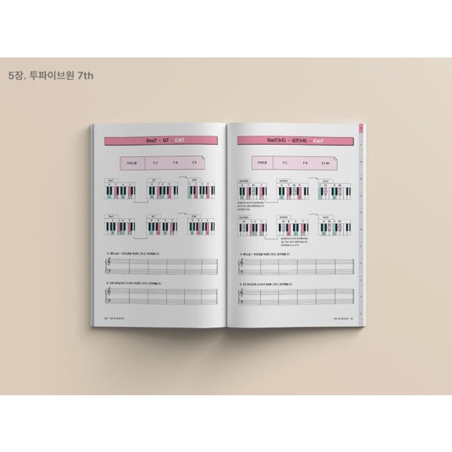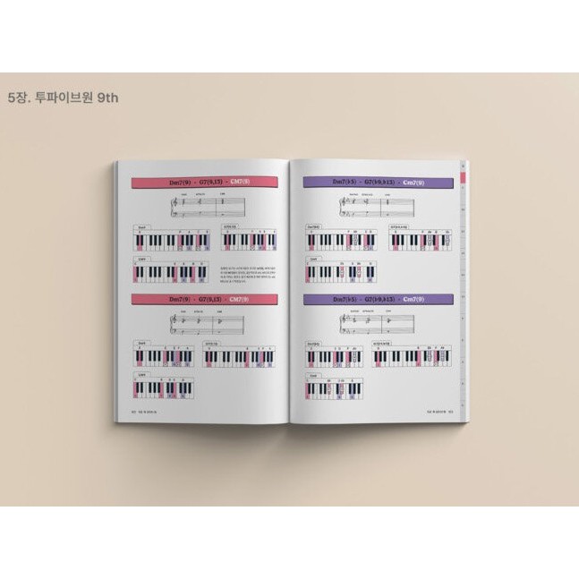 Jazz piano chord book with keyboard illustrations