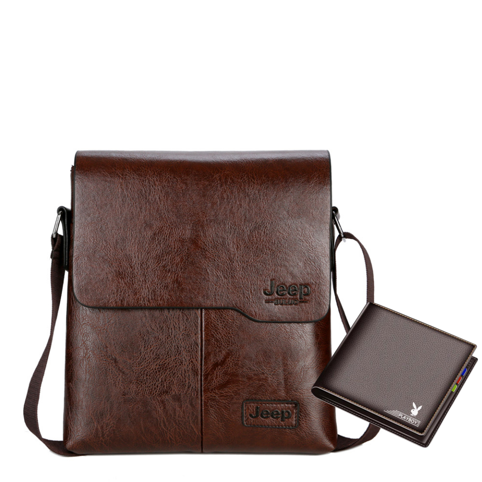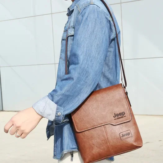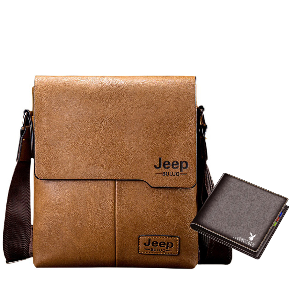 Jeep Men's Sling Bag Leather Plain with Short Wallet Sling Bag Crossbody Bag
