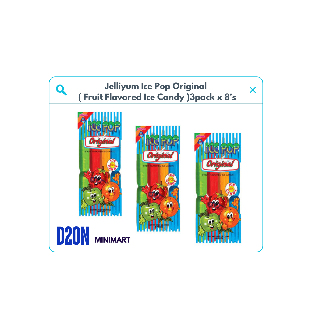 Jelliyum Ice Pop Original ( Fruit Flavored Ice Candy ) 3 Pack x 8's