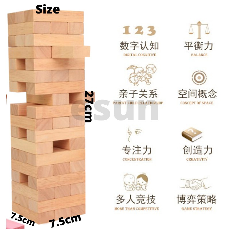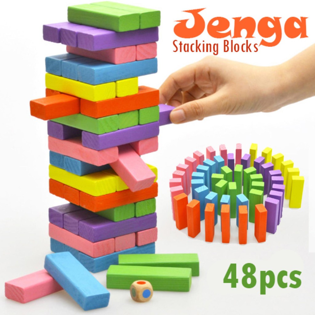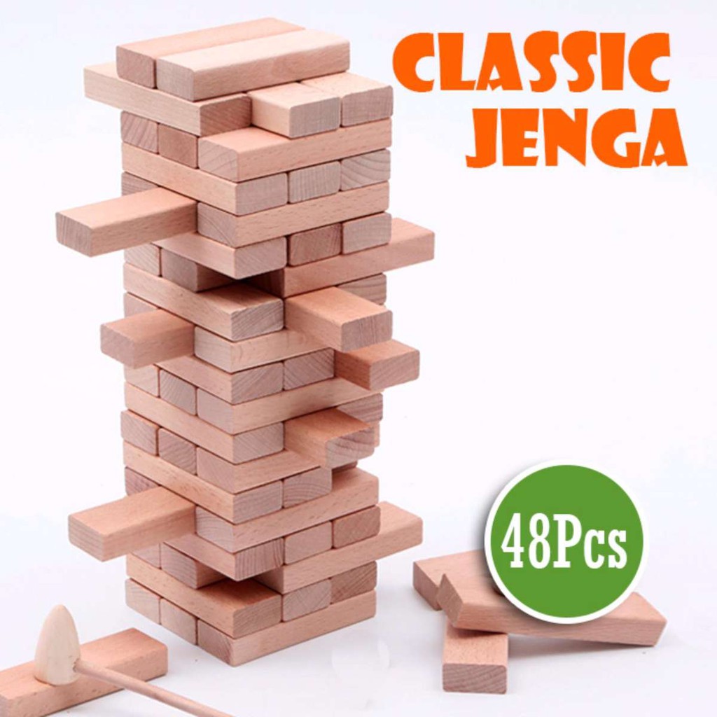 Jenga Wood Compatible Size Classic Building Stacking Blocks Children Puzzle Tumbling (48pcs)