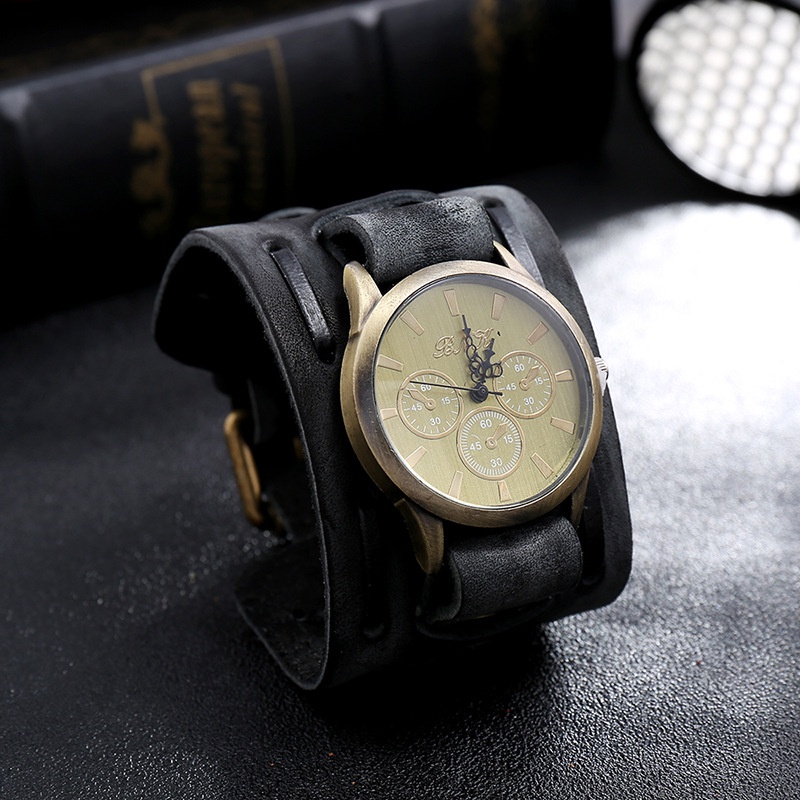 Jessingshow Vintage Men's Watches Punk Retro Decorative Wide Strap Watch Male Clock Leather Bracelet Quartz Man WristWatch