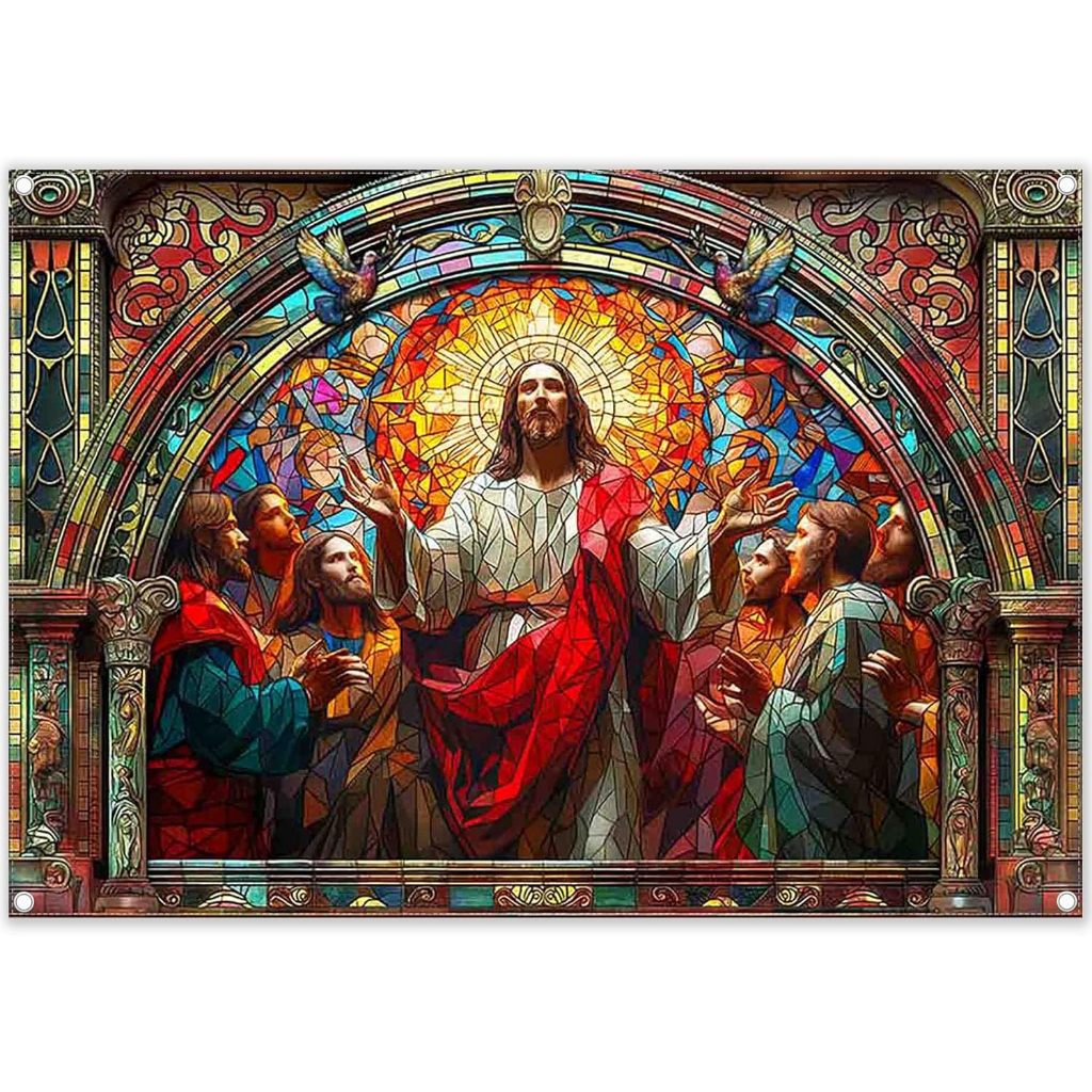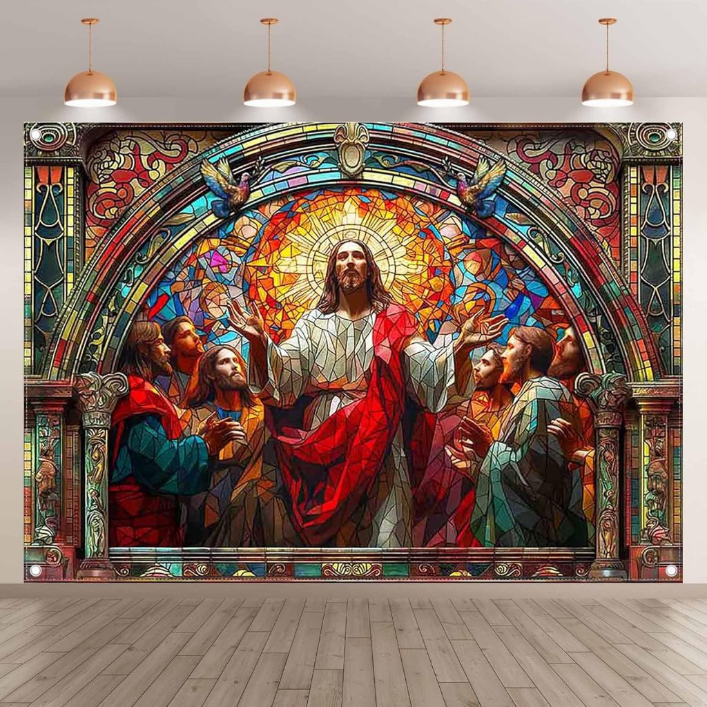 Jesus Photography Backdrop Church Stained Glass He is Risen Easter Christain Religious Background Festival Party Decorations Photo Banner Props