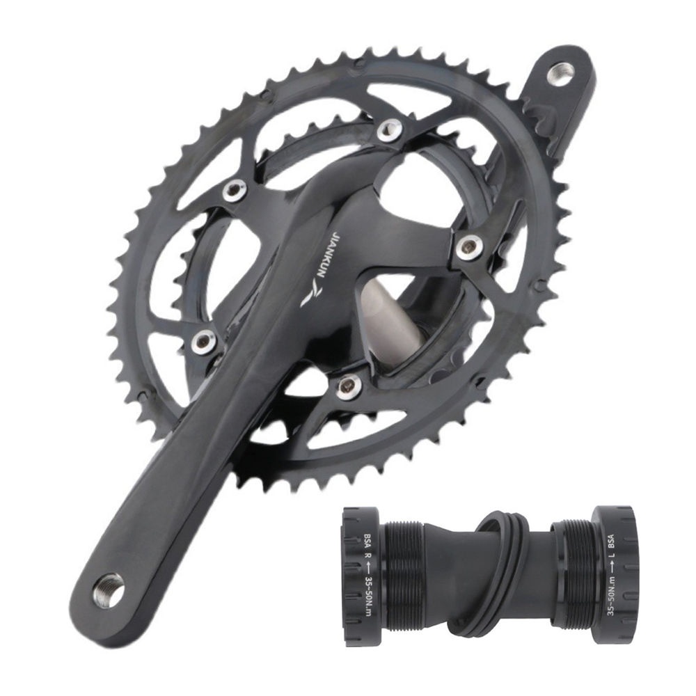Jiankun Road Bike 2 x 9/10/11 Speed Crankset Hollowtech Bottom Bracket 50-34T / 53-39T 170mm