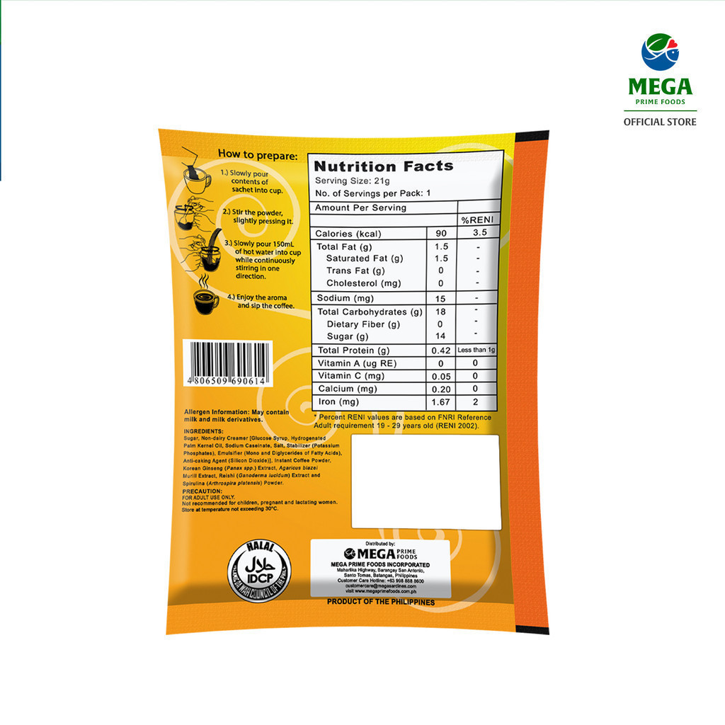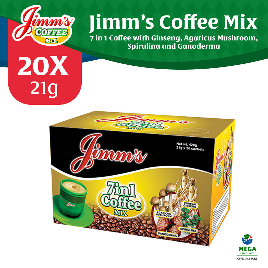 Jimm's Coffee Mix | 7 in 1 Coffee with Agaricus Mushroom, Korean Ginseng 21g by 20s