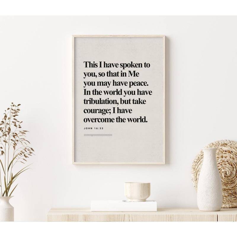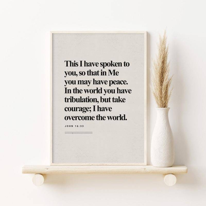 John 16_33, Bible Verse,Modern Bible, Scripture Art, Christian Wall Art, Faith Print, Jesus Peace, Jesus Victory,canvas print