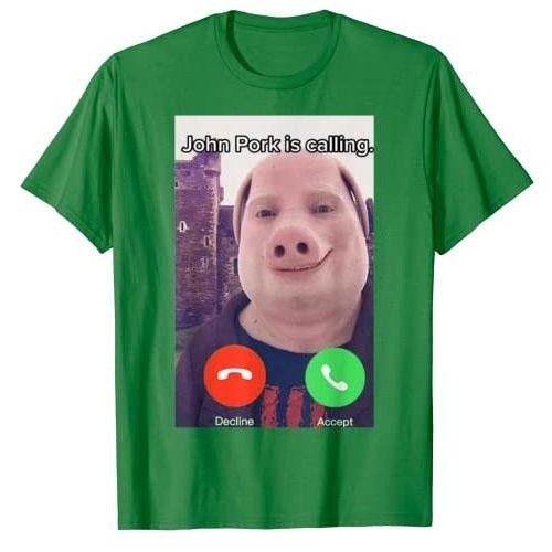 John Pork Is Calling Funny Answer Call Phone T-Shirt Pig Meme Design Graphic Tee Tops