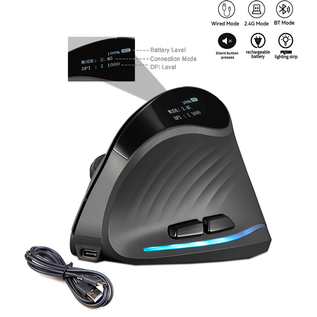 Jomaa Ergonomic Mouse 2.4G Rechargeable Game Bluetooth Vertical Mouse with Screen Display Slient Wireless Mouse for Windows/Mac