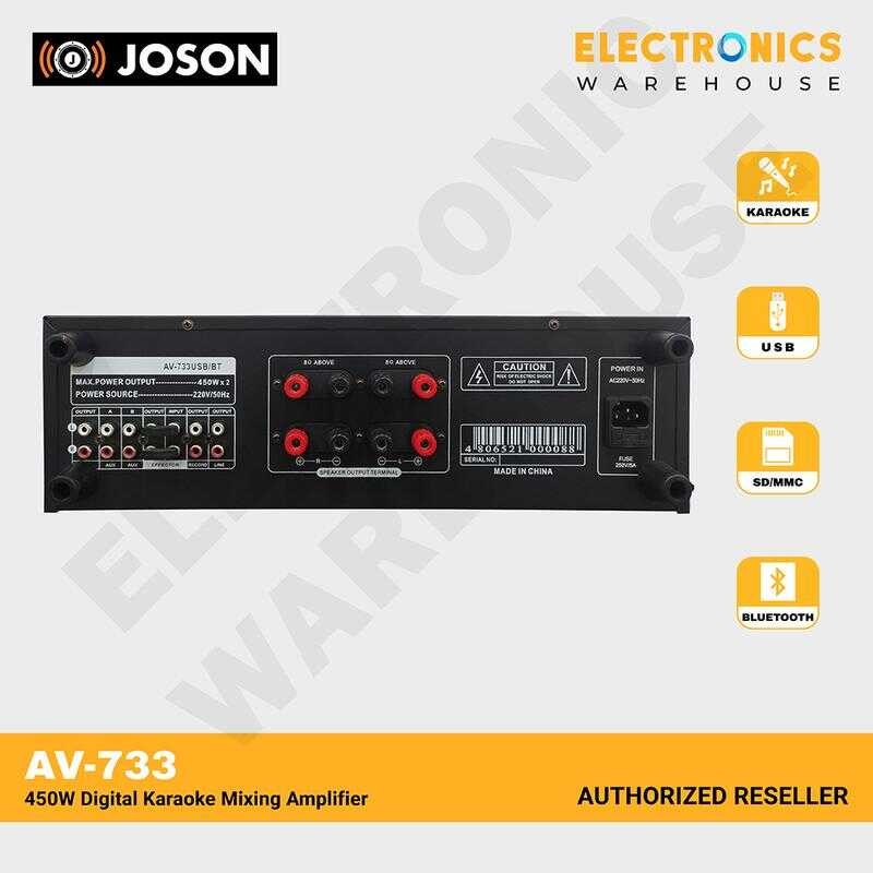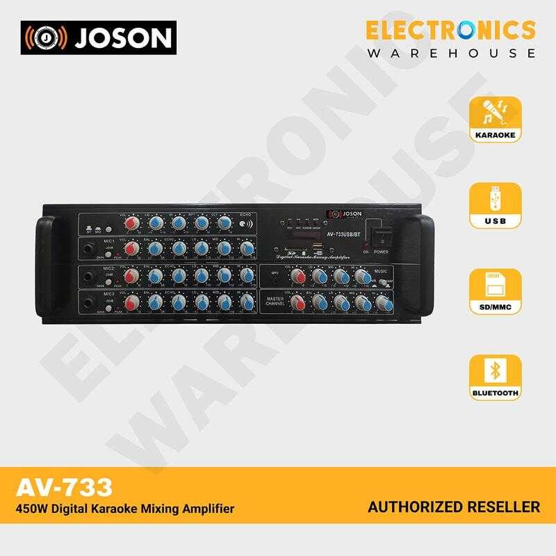 Joson Av-733 Usb/Bt 450W Digital Karaoke Mixing Amplifier Audio Bluetooth 74E