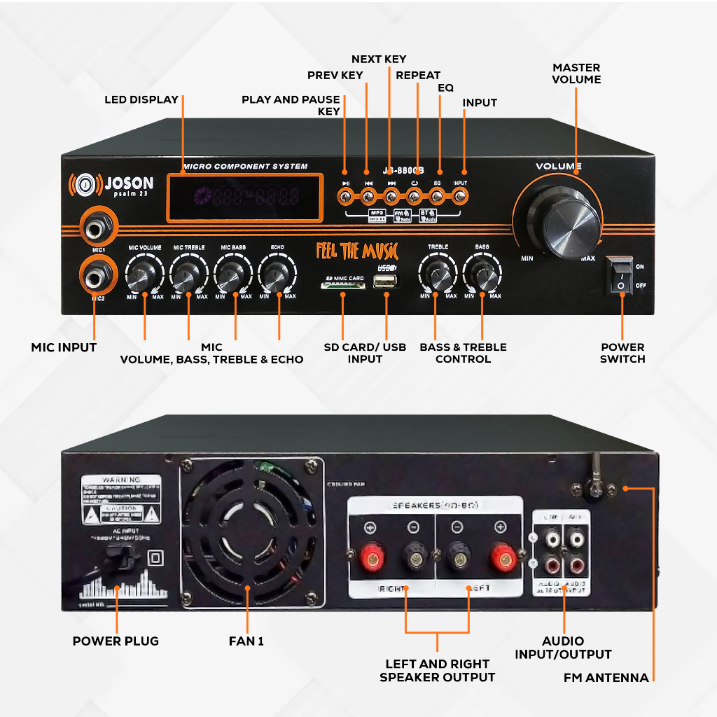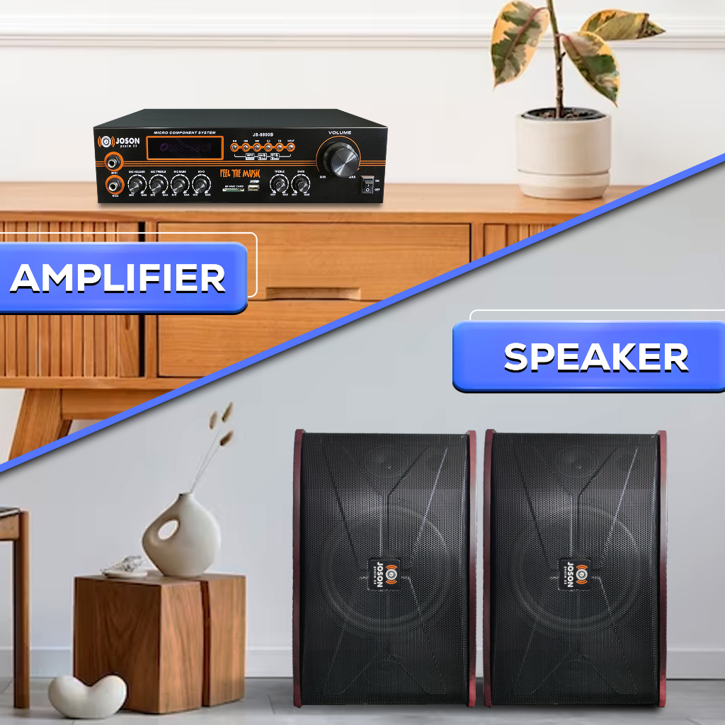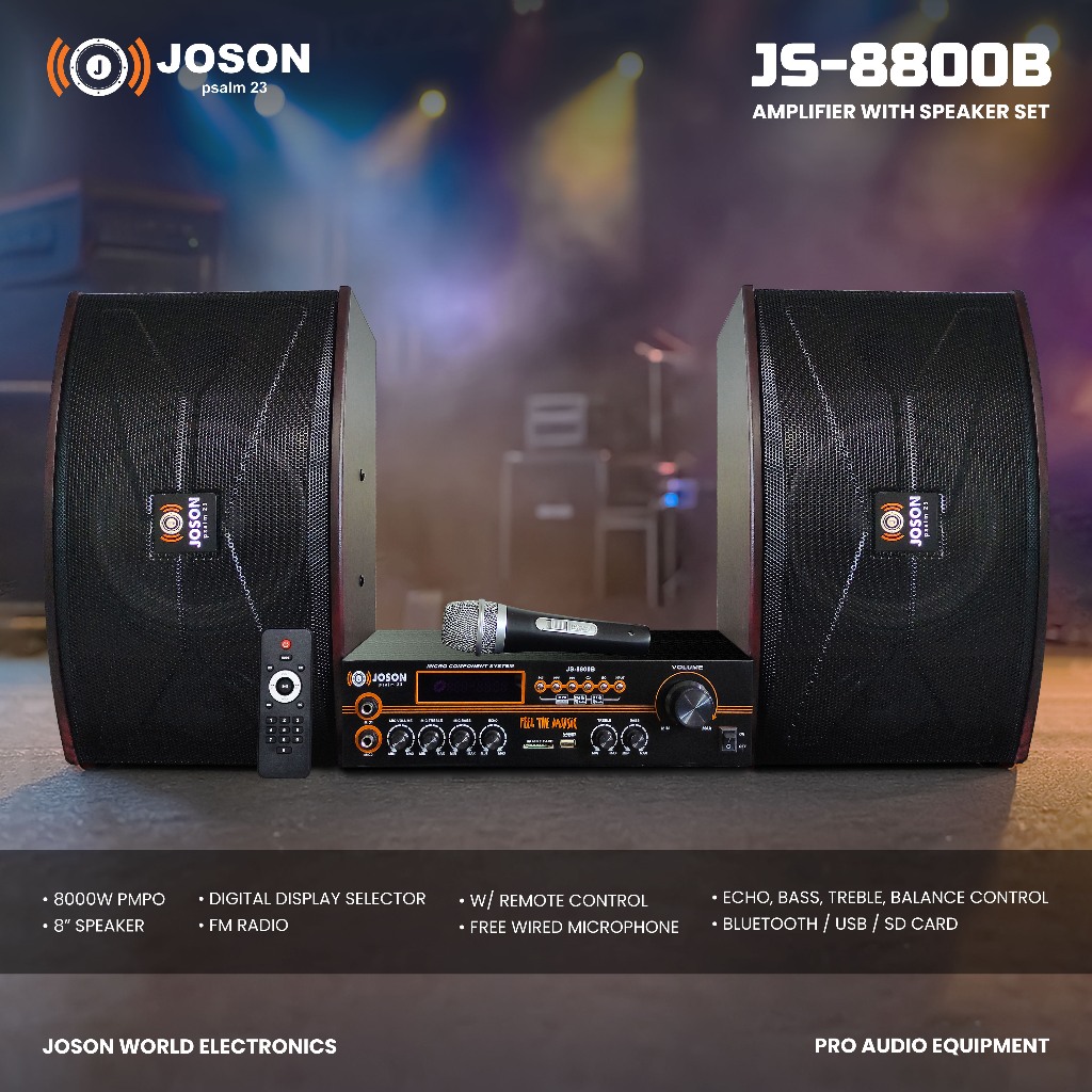 Joson JS-8800B Amplifier w/ Speaker Set (1 Paired 8 Inches Speaker, 1 Amplifier and Microphone)