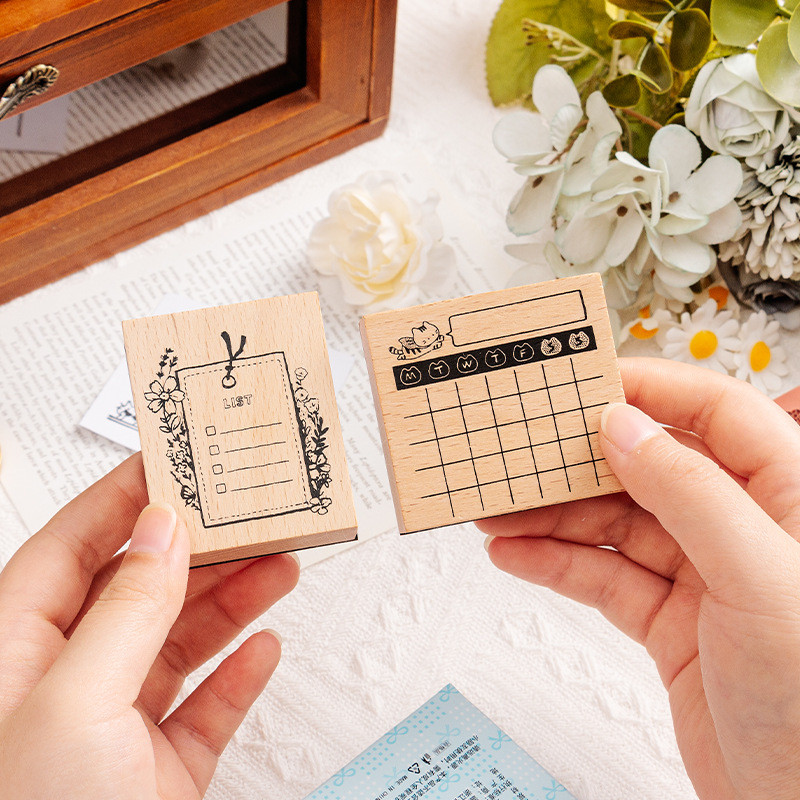 Journal Stamps Set Vintage Wooden Rubber Stamps for Card Making or Journaling Things to do Reminder Albums Journals Scrapbooking Paper Crafts