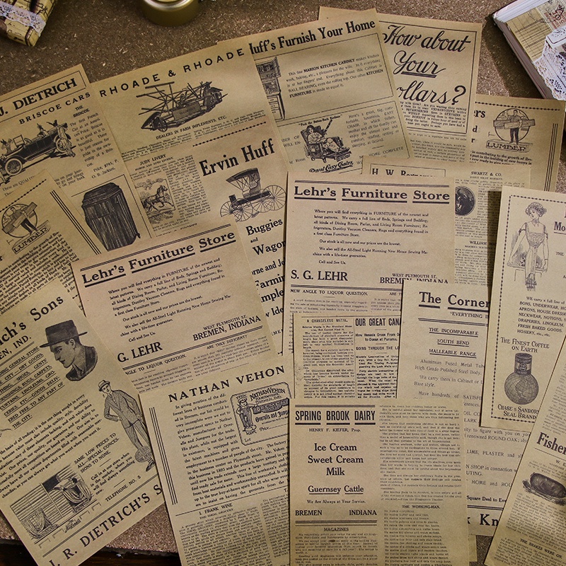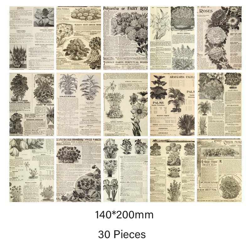 Journamm 30pcs/pack Vintage Newspaper Style Materials Paper Lightweight DIY Scrapbooking Collage Junk Journal Decor
