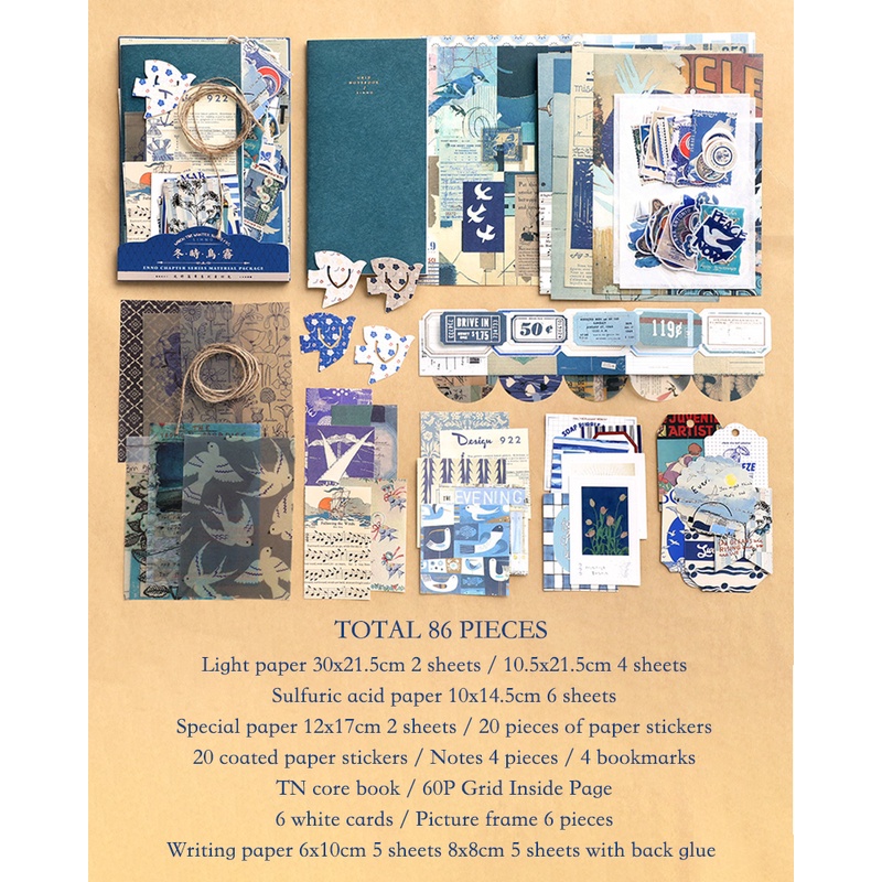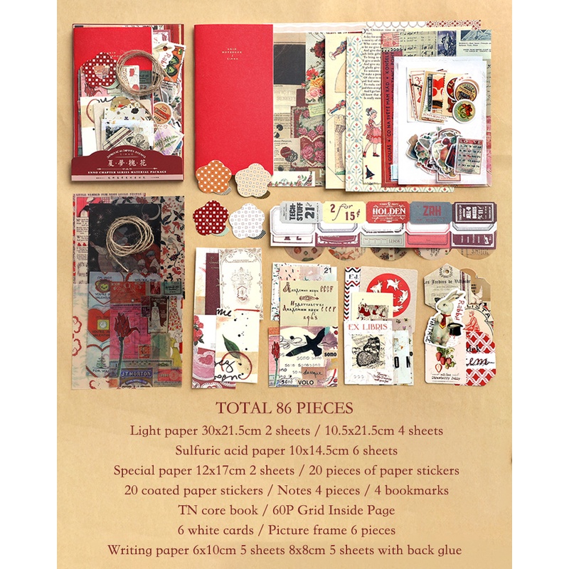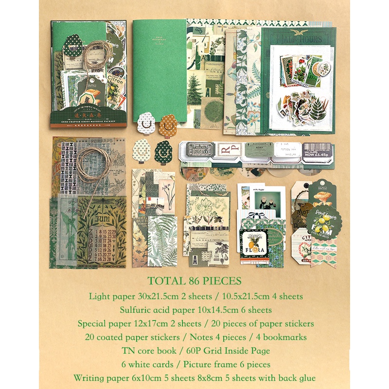 Journamm 86pcs/pack DIY Scrapbooking Pack Collage Junk Journal Decor Stickers Materials Paper Combo Kit Aesthetics Stationery