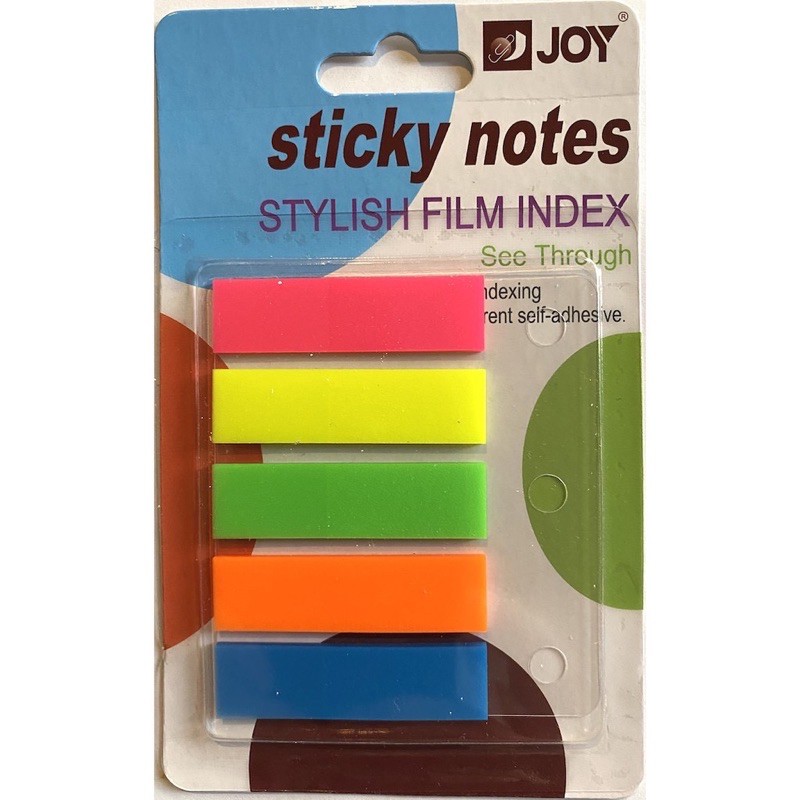 Joy Sticky Notes Stylish Film Index See Through 125 Sheets 5 Assorted Neon Colors School Supplies